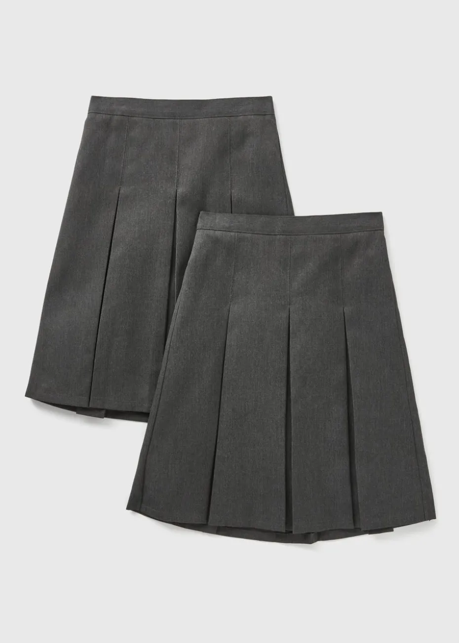 Dress your young one in timeless style with this girls 2 pack grey pleated school skirt, perfect for back to school. Crafted from a durable fabric that lasts, the added pleats create a stylish school look. The versatile grey colour ensures easy pairing with school shirts, making it an essential addition to your child’s wardrobe. With two in a pack, you can always have one ready to go, ensuring your child looks polished every day of the week.