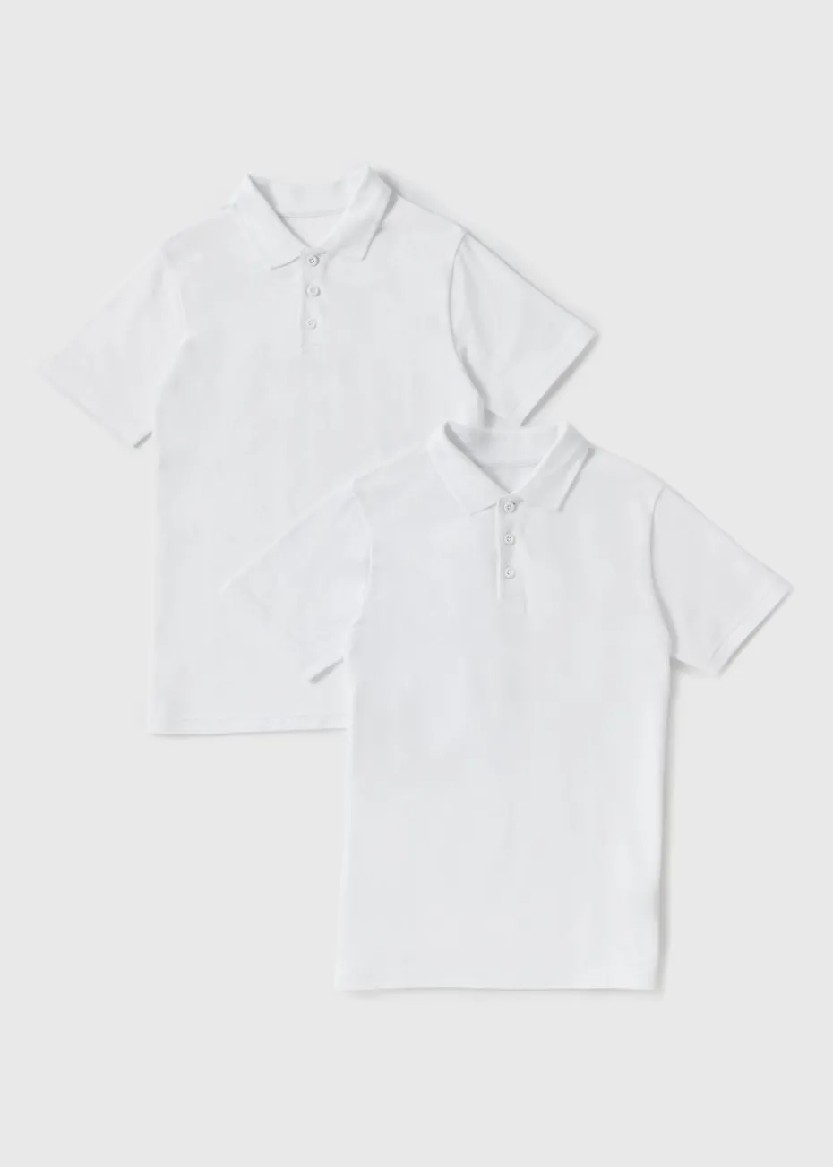 Smart, simple, and school-ready – this 2 pack of white slim fit polo shirts is a school essential. Designed with a closer, modern cut, they offer a neat look without compromising on comfort. Made from soft cotton-blend fabric with a touch of stretch, these polos are perfect for school days, layering, or dressing up casually.