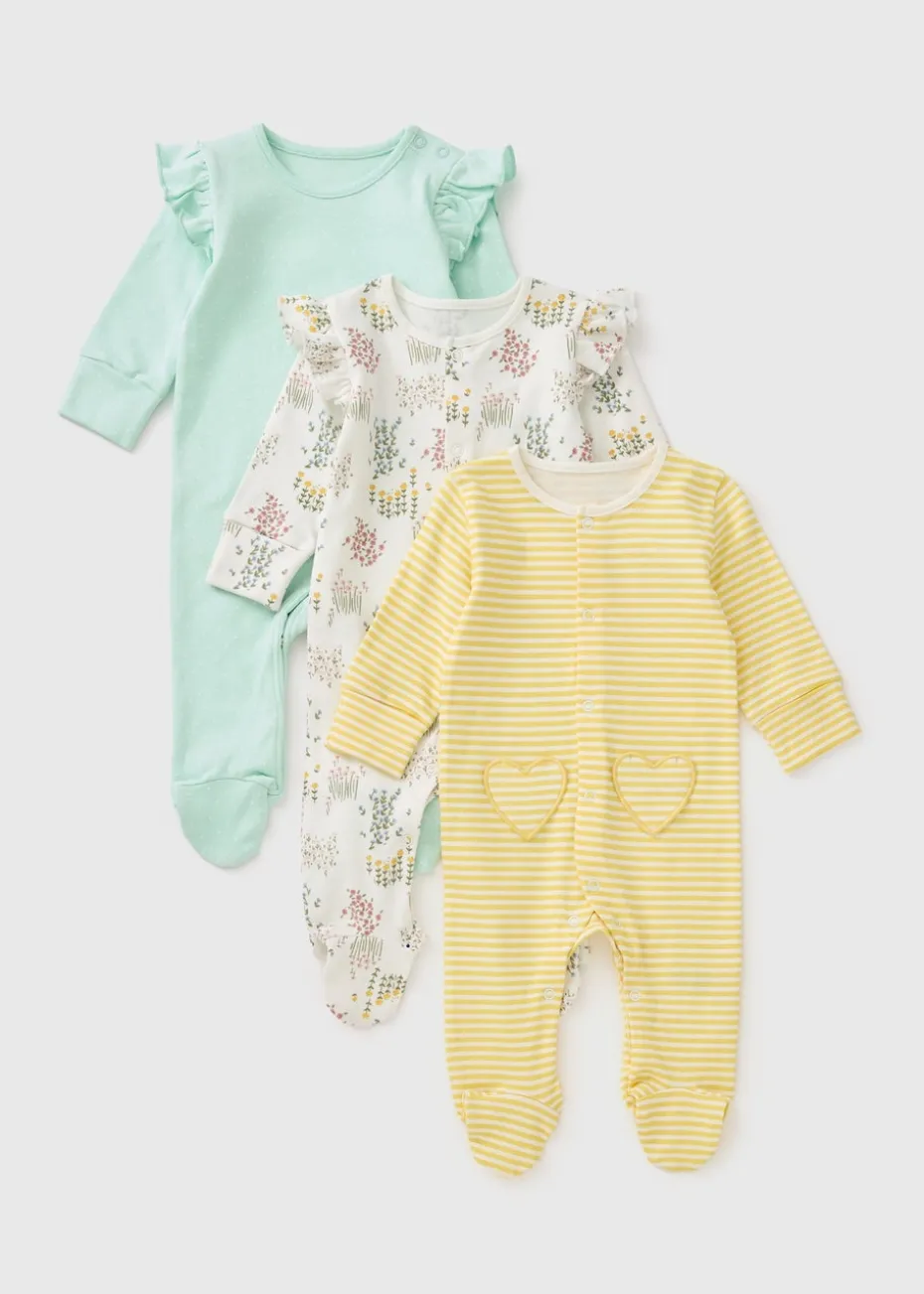 Wrap your little one in softness and style with this 3 Pack of Baby Multicolour Patterned Sleepsuits. Featuring a mix of adorable patterns and vibrant colours, these sleepsuits are perfect for keeping your baby snug and comfortable throughout the night.