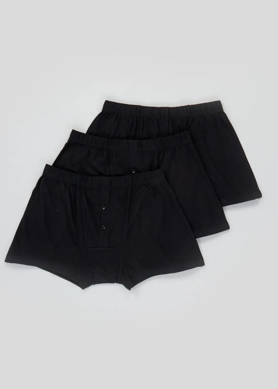 Put comfort at the forefront with this pack of jersey boxers. It includes 3 black pairs, each made from soft cotton with a button front fastening and elasticated waistband.