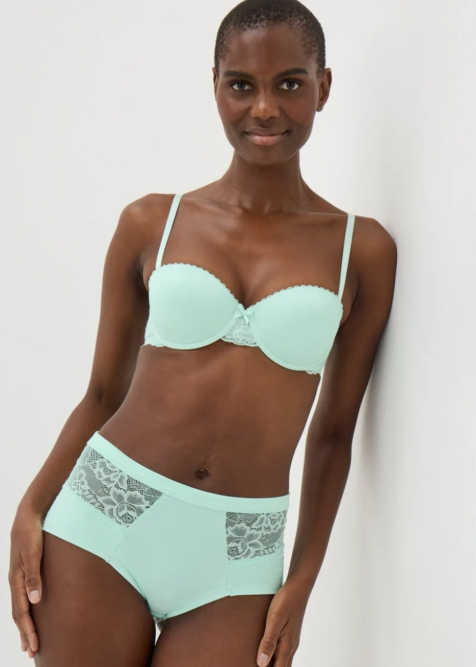 Kick-start your day in comfort and style with our sumptuous 3 pack multicolour lace full knickers. Crafted from brushed material and with lace panel detailing, these knickers provide all day comfort and a confident wear. With a mint, nude and navy colour and a full coverage, these knickers ensure confidence all day.