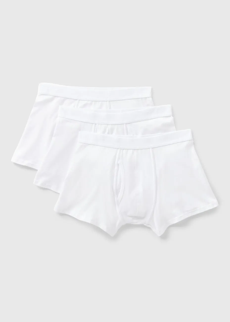 Our 3 Pack White Keyhole Boxers offers classic, comfortable style you can rely on all day long. Crafted from super-soft cotton-rich fabric, these boxers boast a relaxed fit for that easy, breezy feel. Each pair features a classic white colour with a contrasting waistband, providing a refined and versatile look.