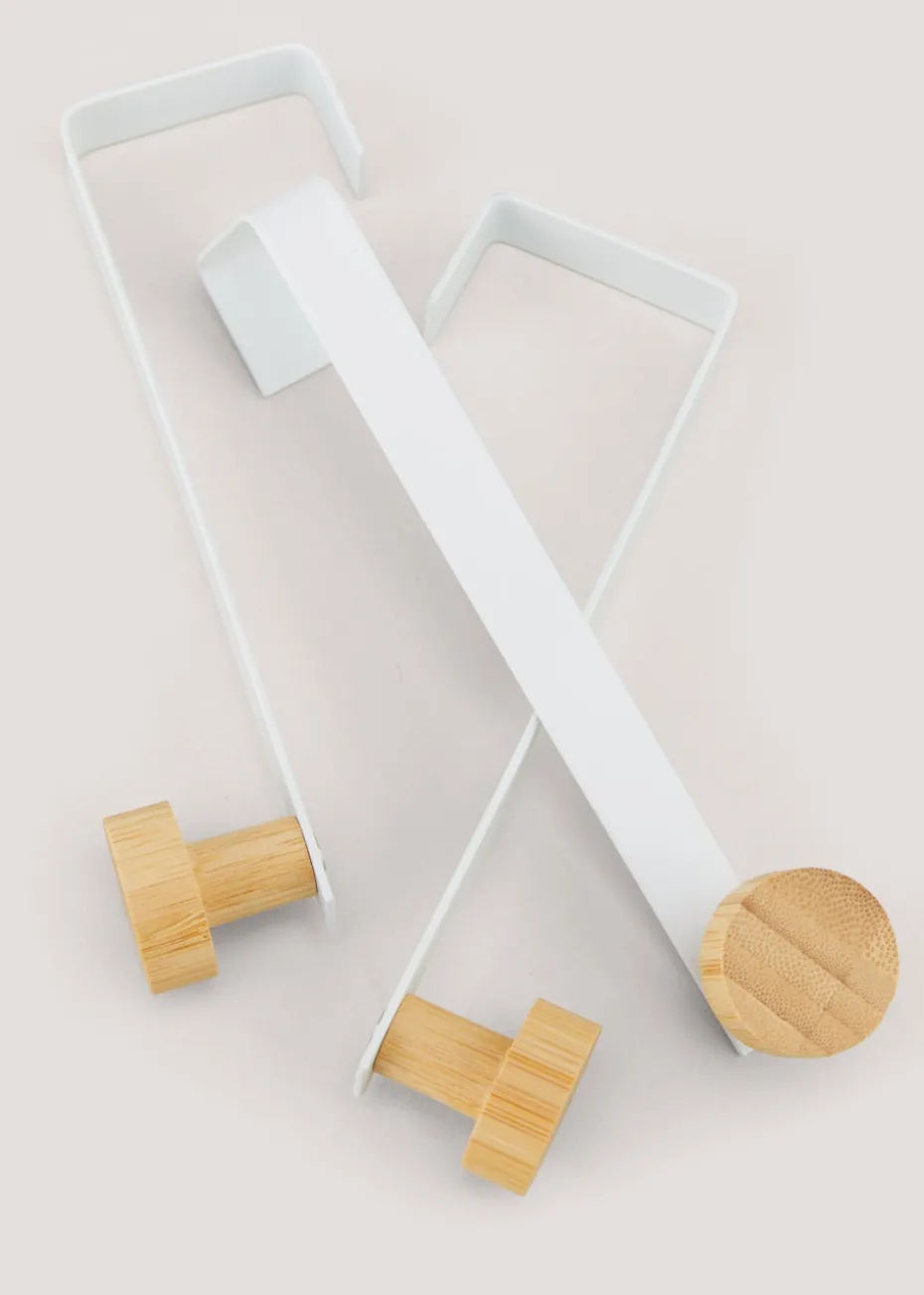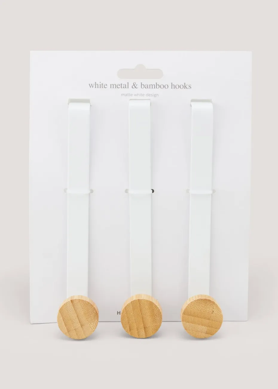 3 Pack White Metal & Bamboo Hooks (12cm x 3.5cm x 3cm)