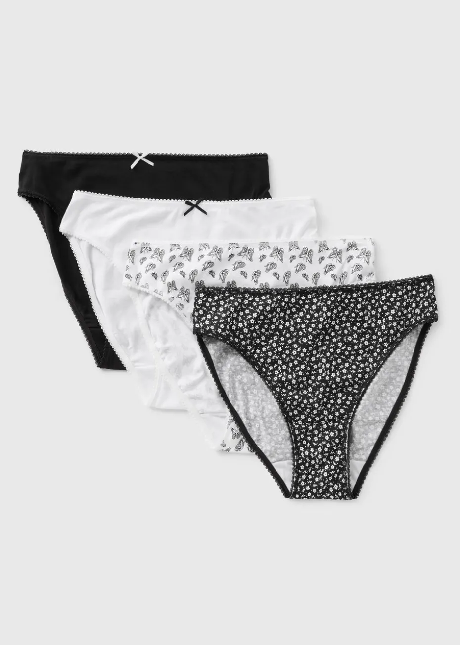 The 4 Pack Black Mono Butterfly High Leg Knickers offer a perfect blend of comfort, style, and everyday practicality. Featuring a flattering high-leg design and delicate butterfly patterns in monochrome tones, these knickers are designed to make you feel confident and chic. Ideal for daily wear, they combine a modern aesthetic with a comfortable fit.