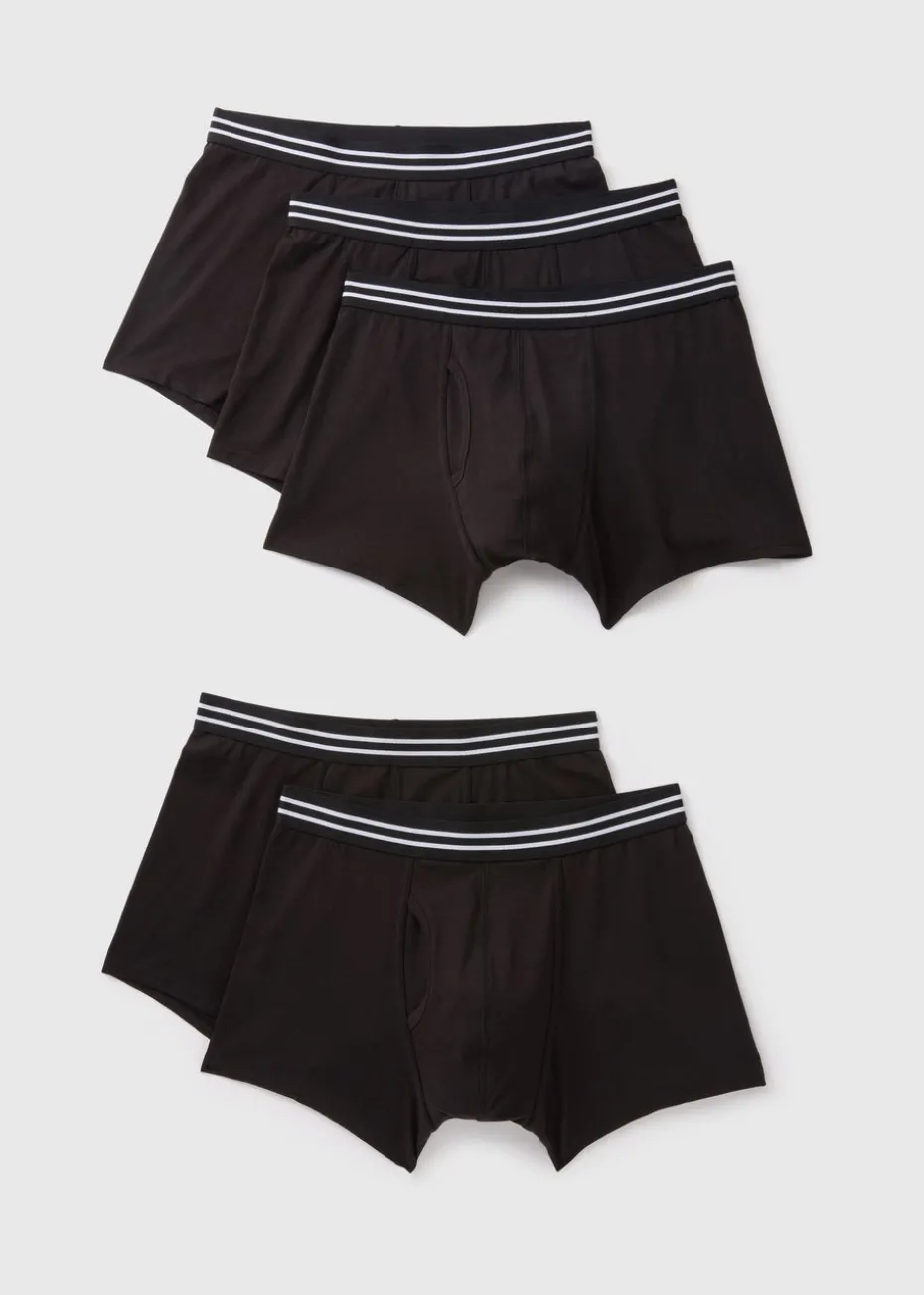 Upgrade your essentials with this 5 Pack of Black Keyhole Boxers. Designed for comfort and style, these boxers feature a classic black design with a modern twist, thanks to the contrasting white stripe waistband, with keyhole. Perfect for everyday wear, these boxers offer a sleek and supportive fit that keeps you comfortable all day long.