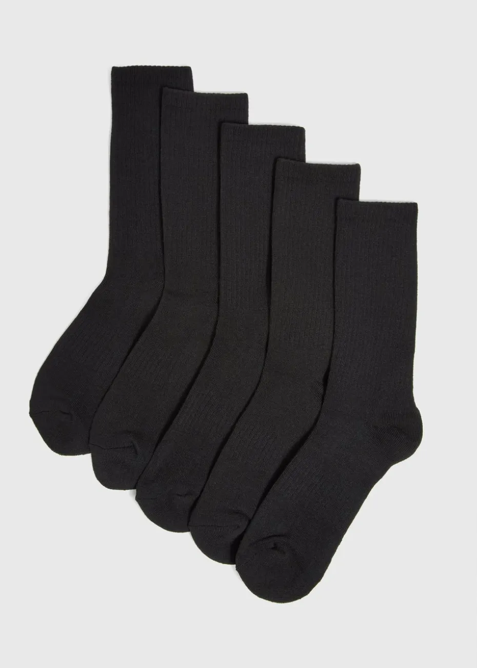 Step up your game with our 5-Pack Black Ribbed Sports Socks, designed to provide the perfect balance of comfort, support, and durability. Made from a premium blend of breathable fabrics, these socks are ideal for all your athletic activities, from intense workouts to casual wear. The ribbed design offers a secure, snug fit that stays in place, reducing the risk of slipping during movement. With reinforced heels and toes, these socks provide extra cushioning and durability in high-impact areas, ensuring they can withstand the rigors of daily use.