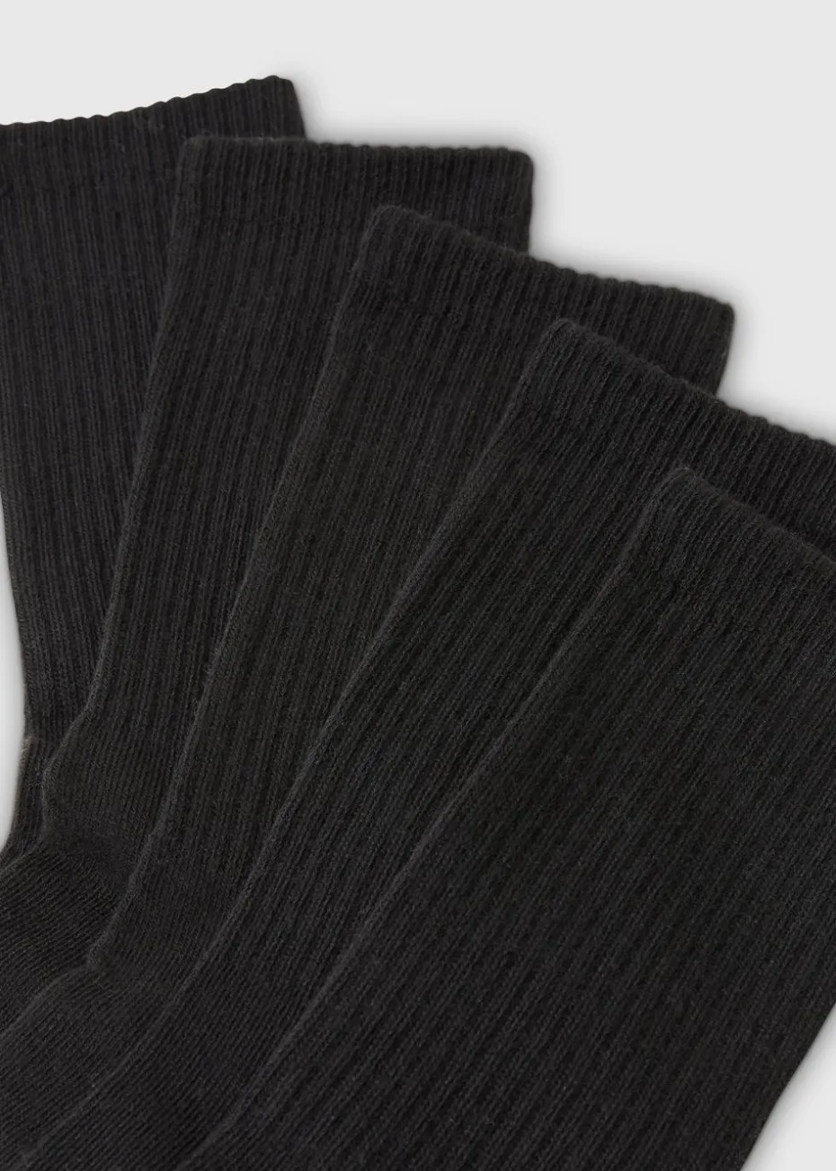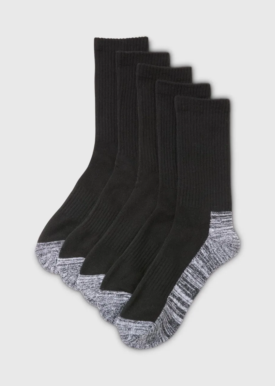 Step up your sock game with this 5-pack of black work socks. Made from a soft blend of materials, these ribbed socks are designed to keep your feet cool, dry and comfortable all day long. Whether you’re on your feet at work or hitting the gym, these socks have got you covered.