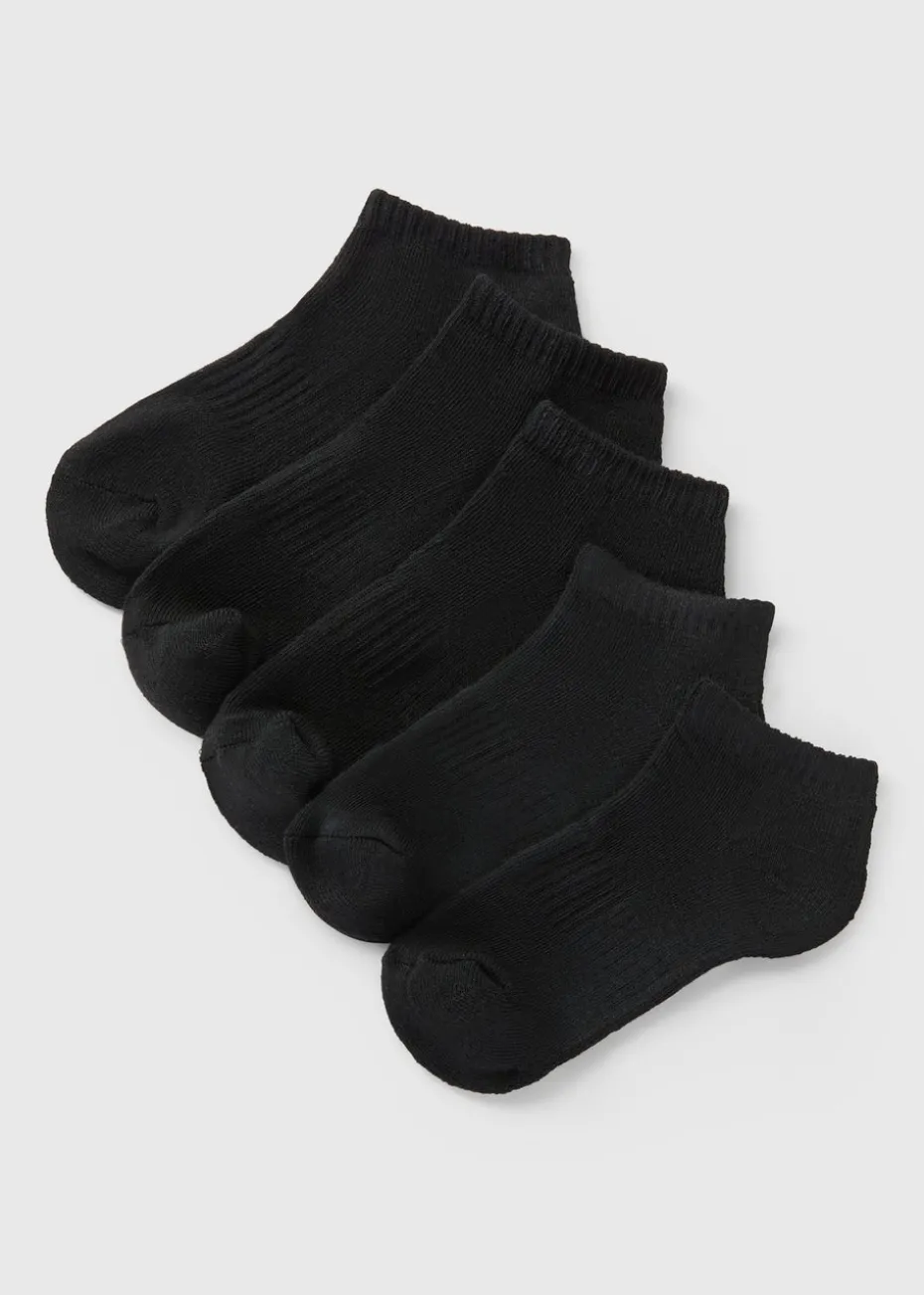 Keep his feet comfortable and ready for action with this 5 Pack of Boys’ Black Sports Trainer Socks! Designed for active days, these socks are made from a soft, breathable fabric with added stretch to provide a snug and supportive fit. The trainer-length design makes them perfect for wearing with sports shoes, ensuring comfort and durability during school, play, or sports activities.