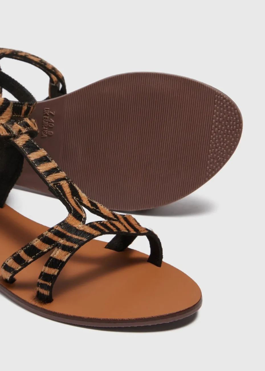 These Animal Print Sandals feature a unique animal print design, with cut-out detailing and a lace-up front and buckle fastening that ensures a secure and adjustable fit. The leather is soft and supple, providing both comfort and durability, while the rubber sole offers excellent grip and stability. Pair with a flowy maxi dress and a wide-brimmed hat for a bohemian summer look or dress up your denim shorts and a tank top with these sandals for a casual-chic ensemble.