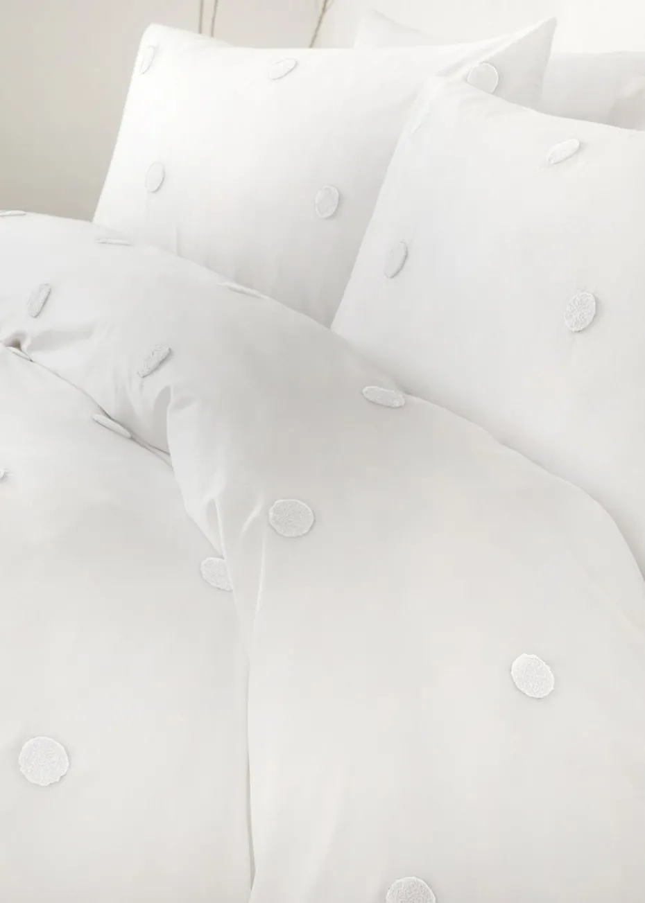 Create the bedroom sanctuary you’ve been dreaming of with this luxurious 100% cotton duvet set by Appletree Boutique. Enhanced with a contrasting textured polka dot design, it comes in a range of colours that will beautifully complement your decor. Rest, recharge and be flooded with the overwhelming sense of calm that comes with sinking into this sumptuous bedding at the end of a long day. Includes one matching pillowcase for the single size and two matching pillowcases for the double, king and super king sizes.