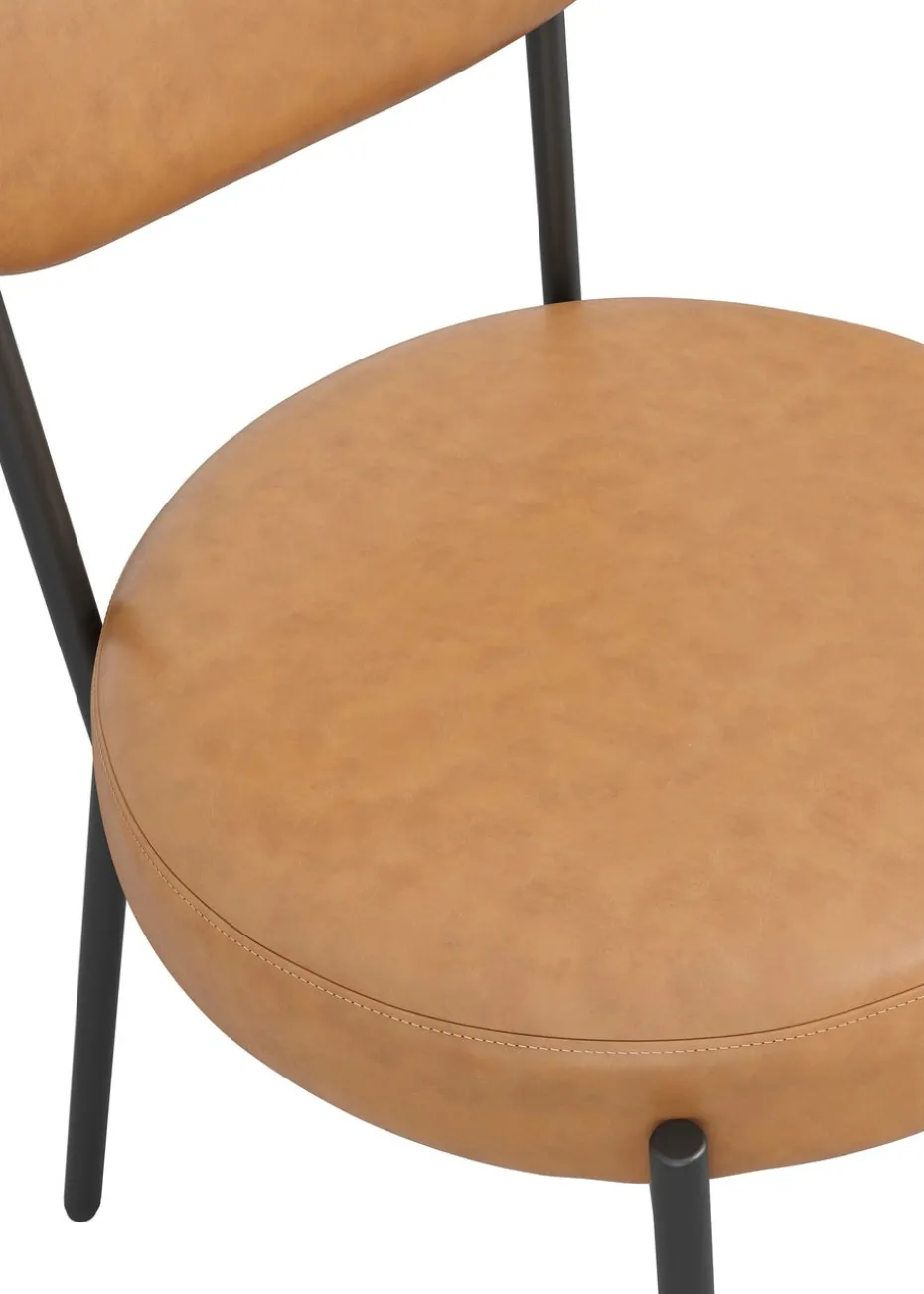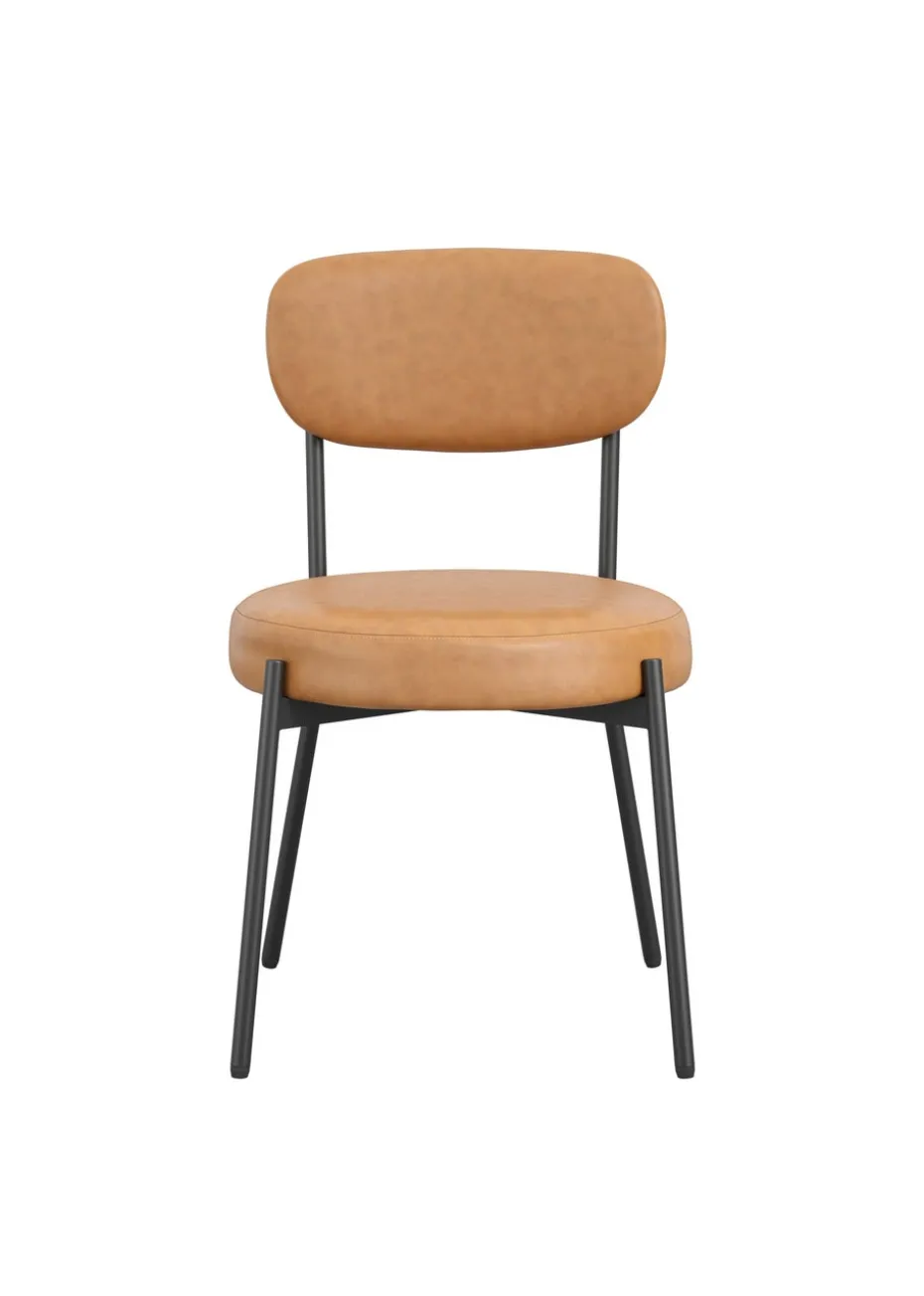The Toby chair is crafted for comfort and style in a modern industrial design. With a practical PU fabric in a rich caramel color and comfortable padded seat, this chair is as functional as it is fashionable. Its matte black legs add a sleek touch to its design, making it a perfect addition to any contemporary space.