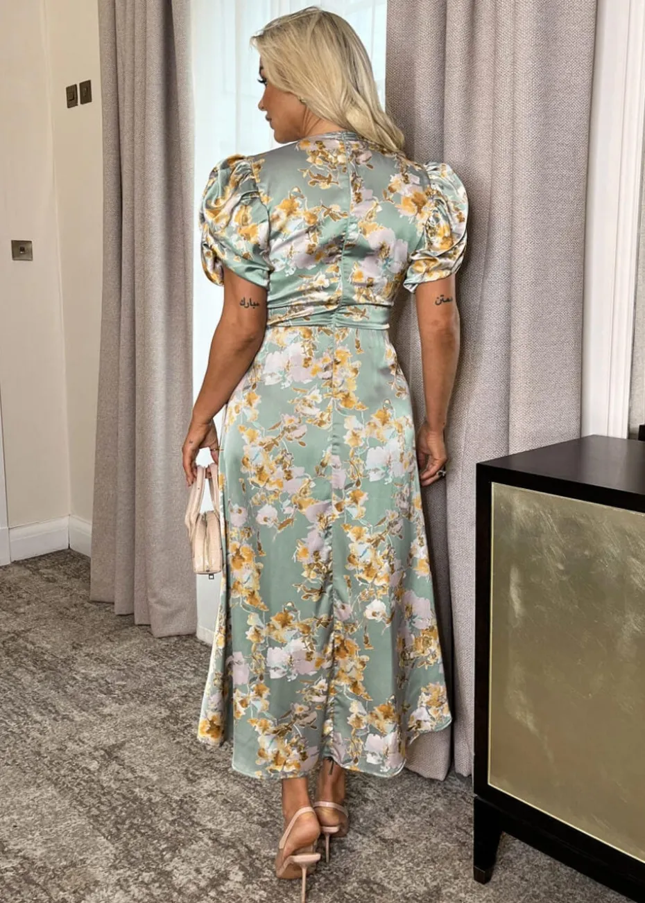 Be the first to review “AX Paris Duck Egg Floral Print Puff Sleeve Gathered Side Midi Dress” Cancel reply