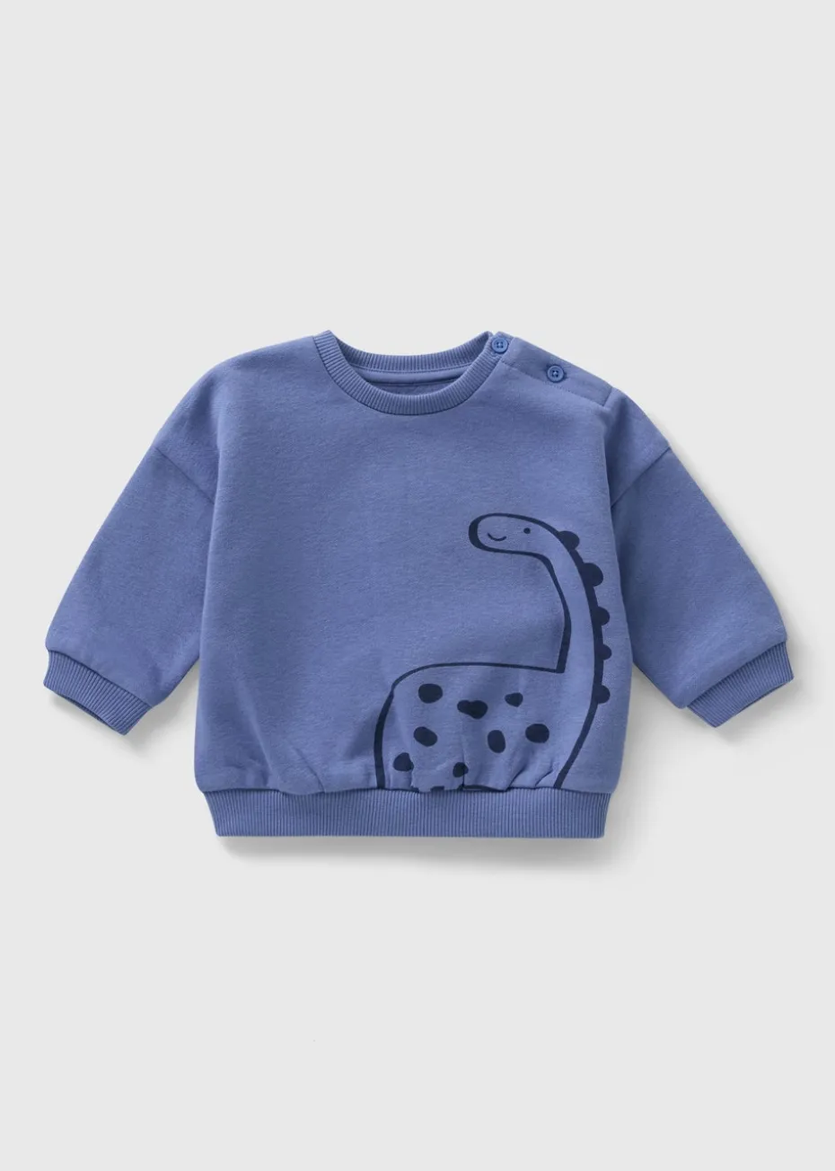 Let your little explorer stomp into comfort with the Baby Blue Dino Sweatshirt, a roarsome addition to any mini wardrobe. Featuring a playful dinosaur graphic on a soft blue backdrop, this sweatshirt is made from cosy, brushed-back fabric to keep your baby warm and snug on chilly days.
