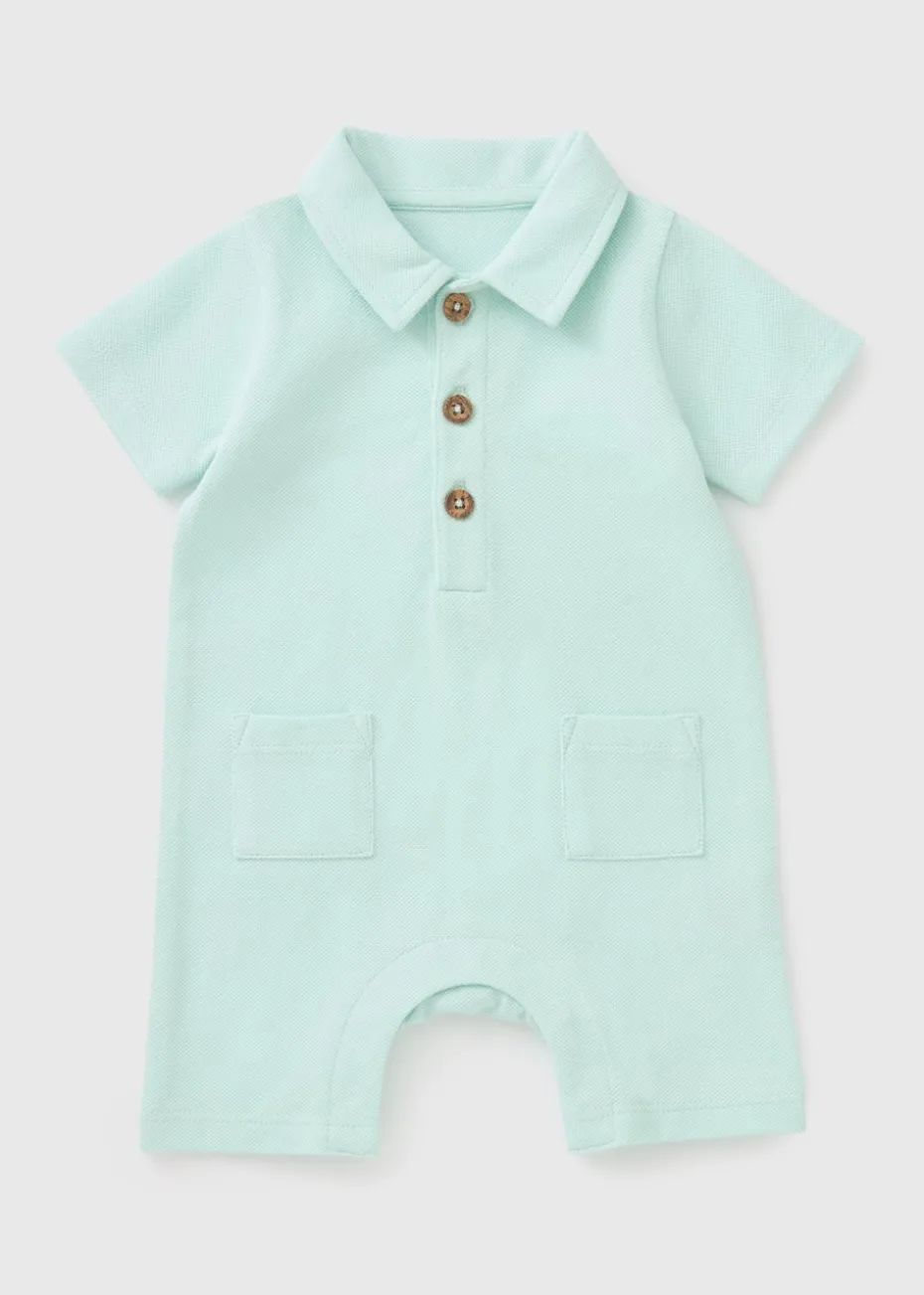 Your little one will look adorable in our Polo Romper Blue. This romper is made from a soft and comfortable cotton, and features a classic polo collar and button placket. The allover blue colour is perfect for summer, and the romper is easy to put on and take off.