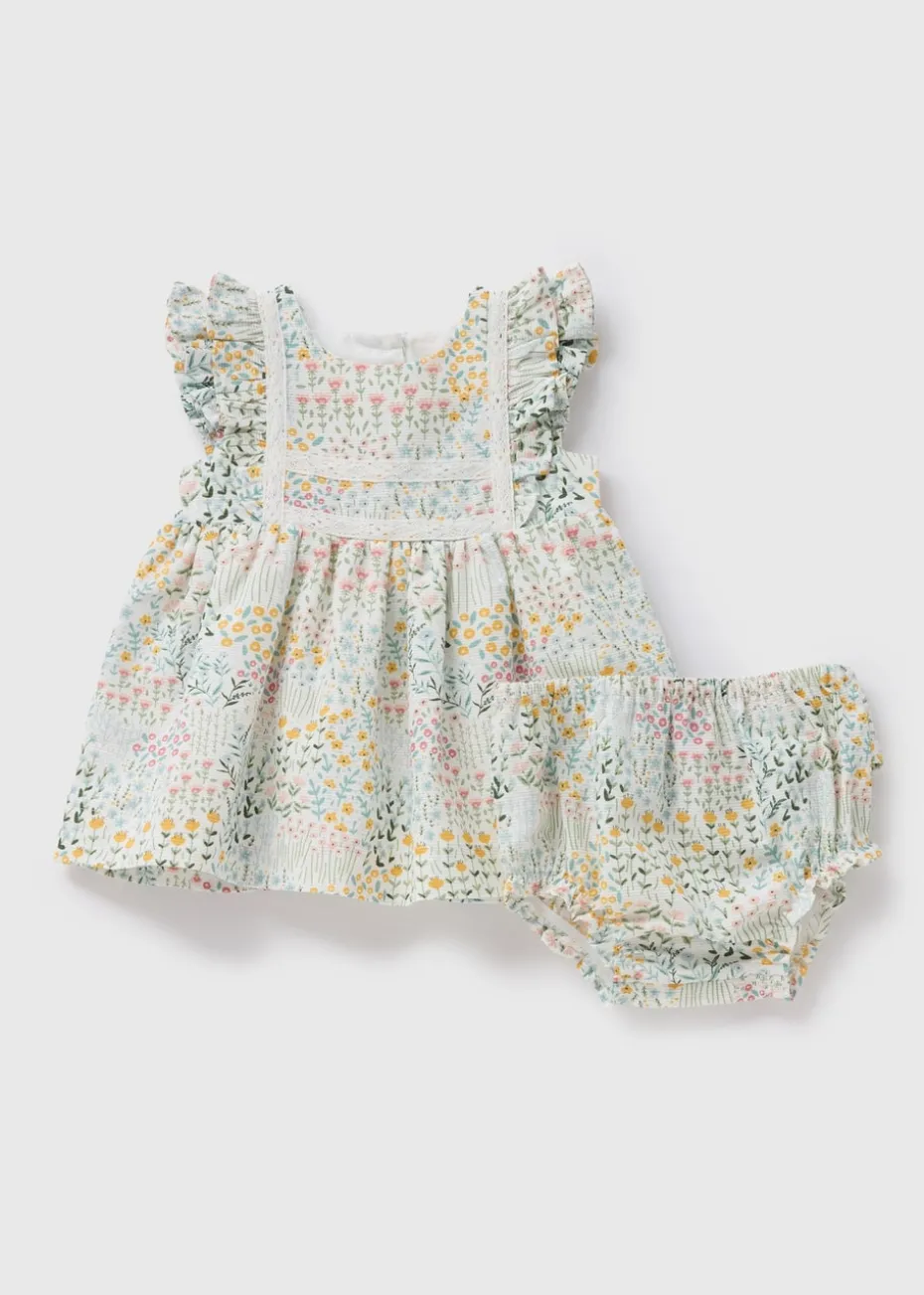 This Baby Cream Floral Dress Set is a charming and comfortable outfit for your little one. Featuring a sweet floral print and soft fabric, it’s perfect for any casual outing or playdate. With lace detailing and frill shoulder sleeves, the dress provides a cute and practical option for an easy-to-wear, stylish look.