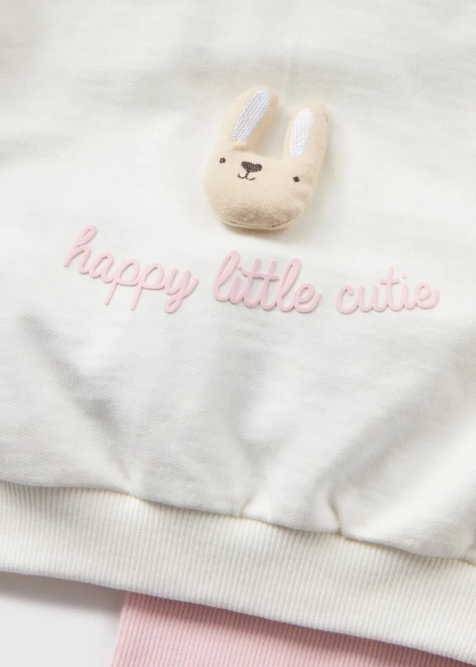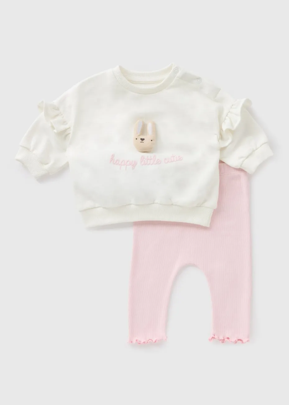 Your little one will look adorable and feel cosy in our Baby Pink Bunny Sweatshirt & Legging Set. Made from soft cotton-blend fabric, this outfit includes a long-sleeved sweatshirt and matching leggings, featuring a cute 3D bunny design. Perfect for keeping your baby comfortable and stylish during cooler weather.