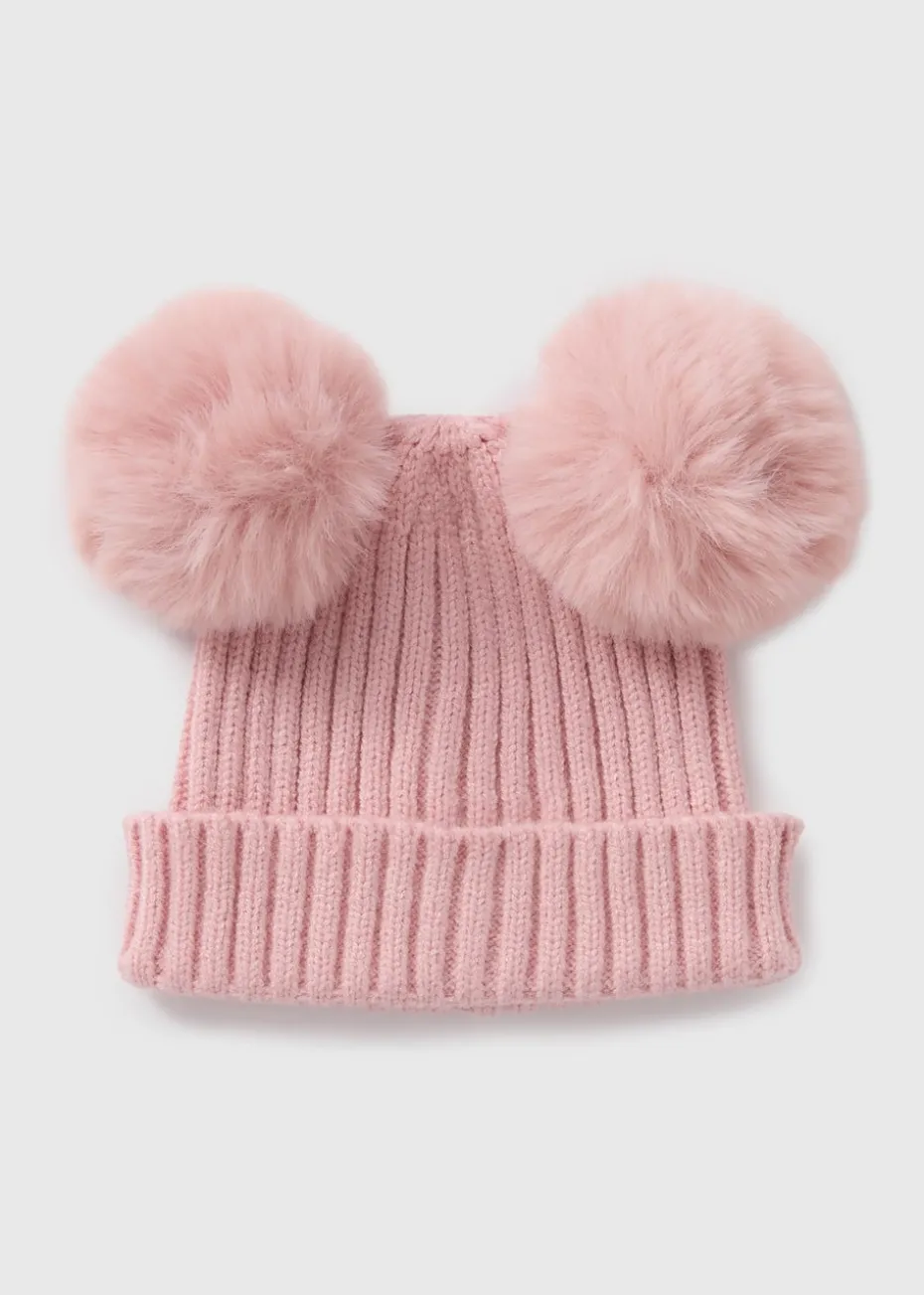 Bundle up your little one in our snuggly pink double pom-pom beanie. Crafted from a soft and gentle ribbed material, this beanie is designed to keep your baby warm and cosy during chilly days. The charming pink colour is versatile , making this beanie a perfect accessory for any outfit.