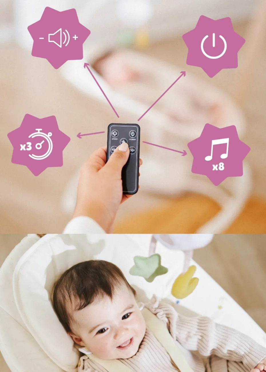 Thanks to its remote control, you can choose the swing mode, the melody played, adjust the volume or even turn the swing off.