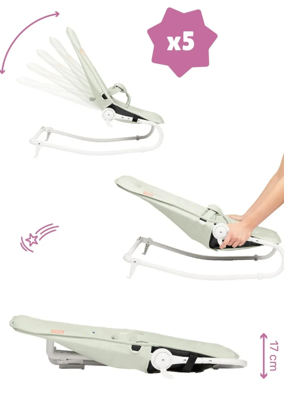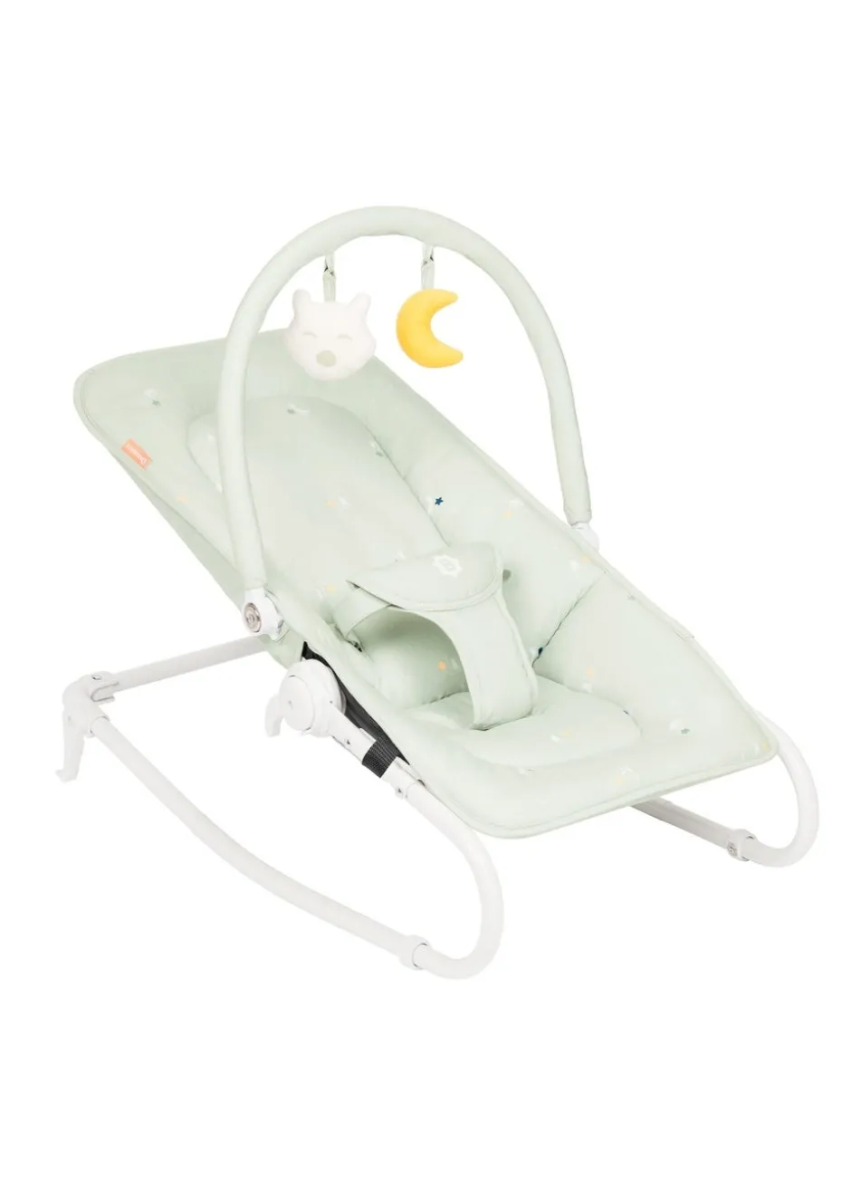 As your little one grows, it’s time to start introducing them to their surroundings. It has 5 adjustable positions, making it easy to recline the backrest and seat. The bouncer moves into the Awake position. The removable play arch attracts their attention. They try to grip and touch the toys. Crinkly paper, super soft fabric: there’s something for everyone!