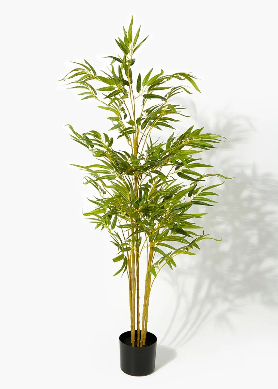 Bring lush greenery to any room in your home with this artificial bamboo tree. The realistic stems and leaves come presented in a simple round black pot that will complement any modern decor.