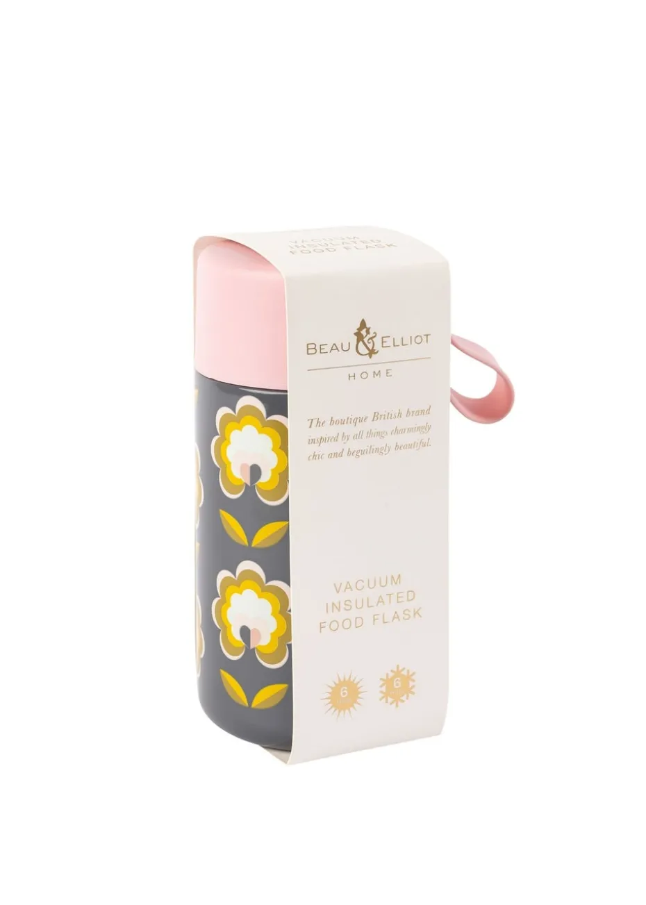 Beau & Elliot Boho Food Flask. Inspired by the emerging trend for all things retro, Boho brings a touch of 70’s nostalgia to lunchtime dining with bold flowers and retro colours recreated across a range of options to keep you equipped for the day ahead. Take your hot or cold food wherever you go with the Beau & Elliot leak-proof, reusable food flask, perfect for lunch & picnics. From pasta to quinoa & soups to salads our insulated food flask is perfect for keeping your lunch hot or cold for up to 6 hours thanks to the high-quality, vacuum-insulated stainless-steel. The wide mouth allows you to eat directly from the flask – as well as easy cleaning.The light and compact design makes for easy transportation, and storage & it fits the Boho lunch totes and 2 in 1 convertible bags.Note – Be environmentally friendly by using the Navigate food flask instead of disposable containers so as to reduce food and packaging waste.Other coordinating Boho items are sold separately. Features: Our insulated Food Flask is perfect for keeping your lunch hot or cold for up to 6 hours. The wide mouth allows you to eat directly from the flask. Fits inside all of our Beau & Elliot lunch bags. Dimensions: H:16.0 x W:8.0 x D:8.0 cm Colour: Grey Material: Stainless Steel Care: Hand wash