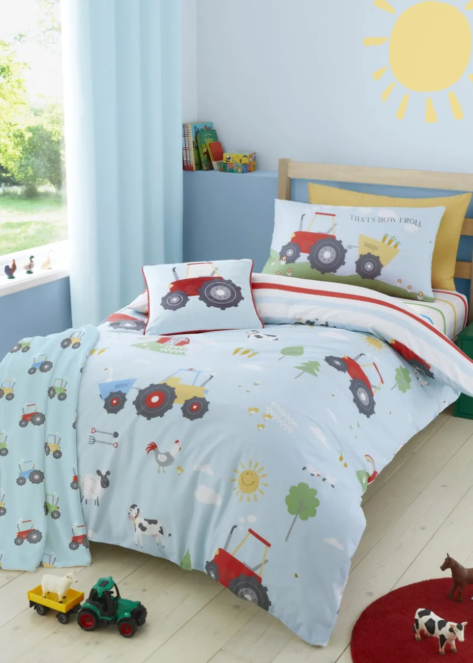 Printed on to a soft touch, cuddly fleece fabric, this fun printed throw features a convoy of colourful tractors and will help keep you warm and cosy, wherever you choose to use it.