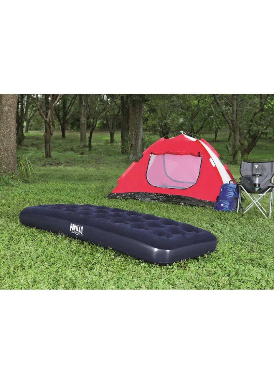 The Bestway Air Mattress is designed for both indoor and outdoor use, making it perfect for whatever you may need! This Jr. Twin bed is a great tag-along for a camping trip or a nice addition to a spare bedroom. It inflates and deflates quickly, making it just as convenient as it is comfortable. Durable Construction: This air mattress provides essential comfort for a great night’s sleep. The velvet-like sleep surface is soft and warm. The inner coil beams mimic the feel of a standard mattress, which is great for active sleepers. These coils provide contoured support around you and can respond quickly to body movement. Simple Setup: This bed features a large 2-way quick release valve to provide fast, easy inflation and deflation. Whether you’re on-the-go or at home, this bed will inflate in minutes with an air pump (not included). After the night’s over, simply release the valve, and the bed will deflate before your eyes.