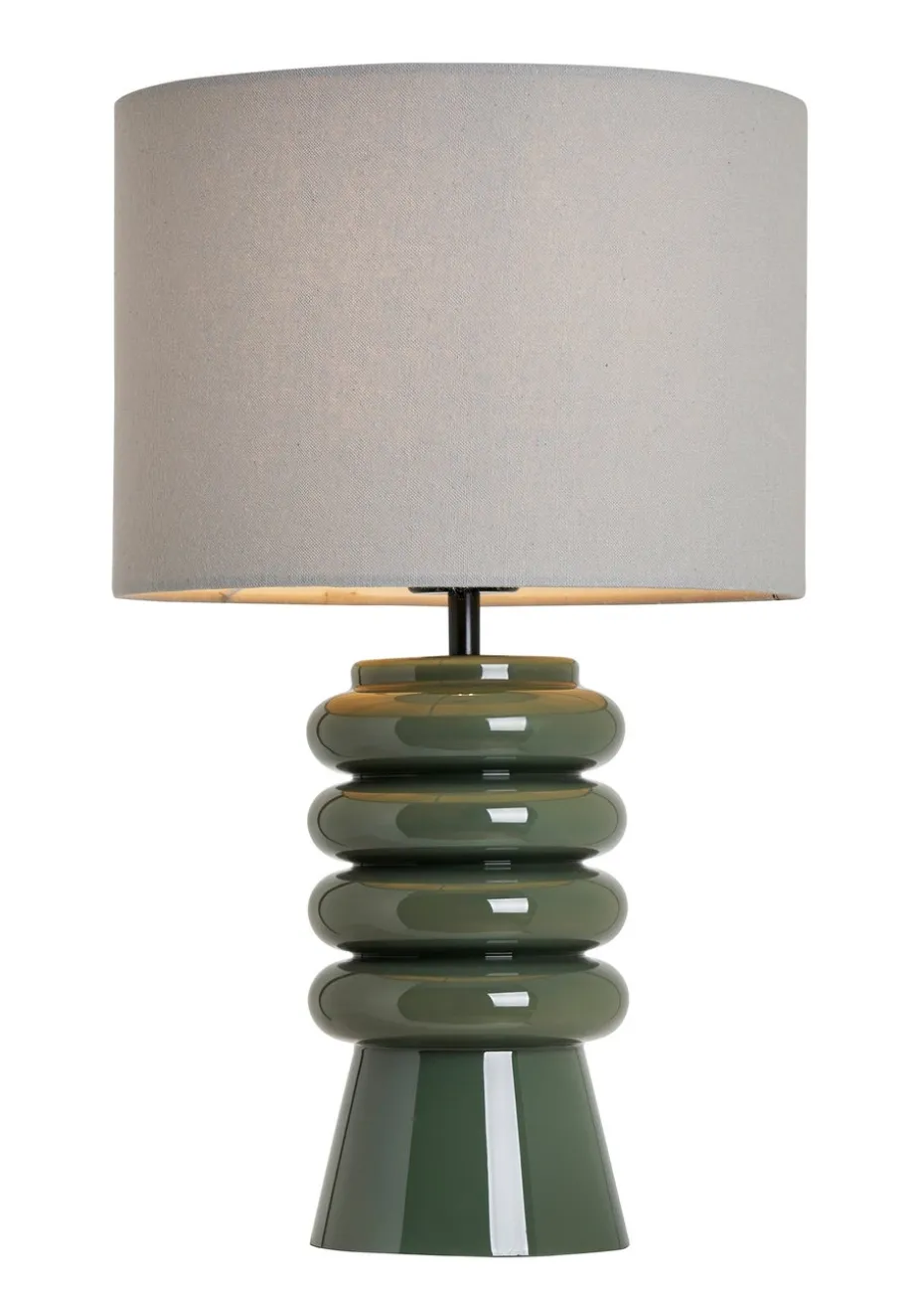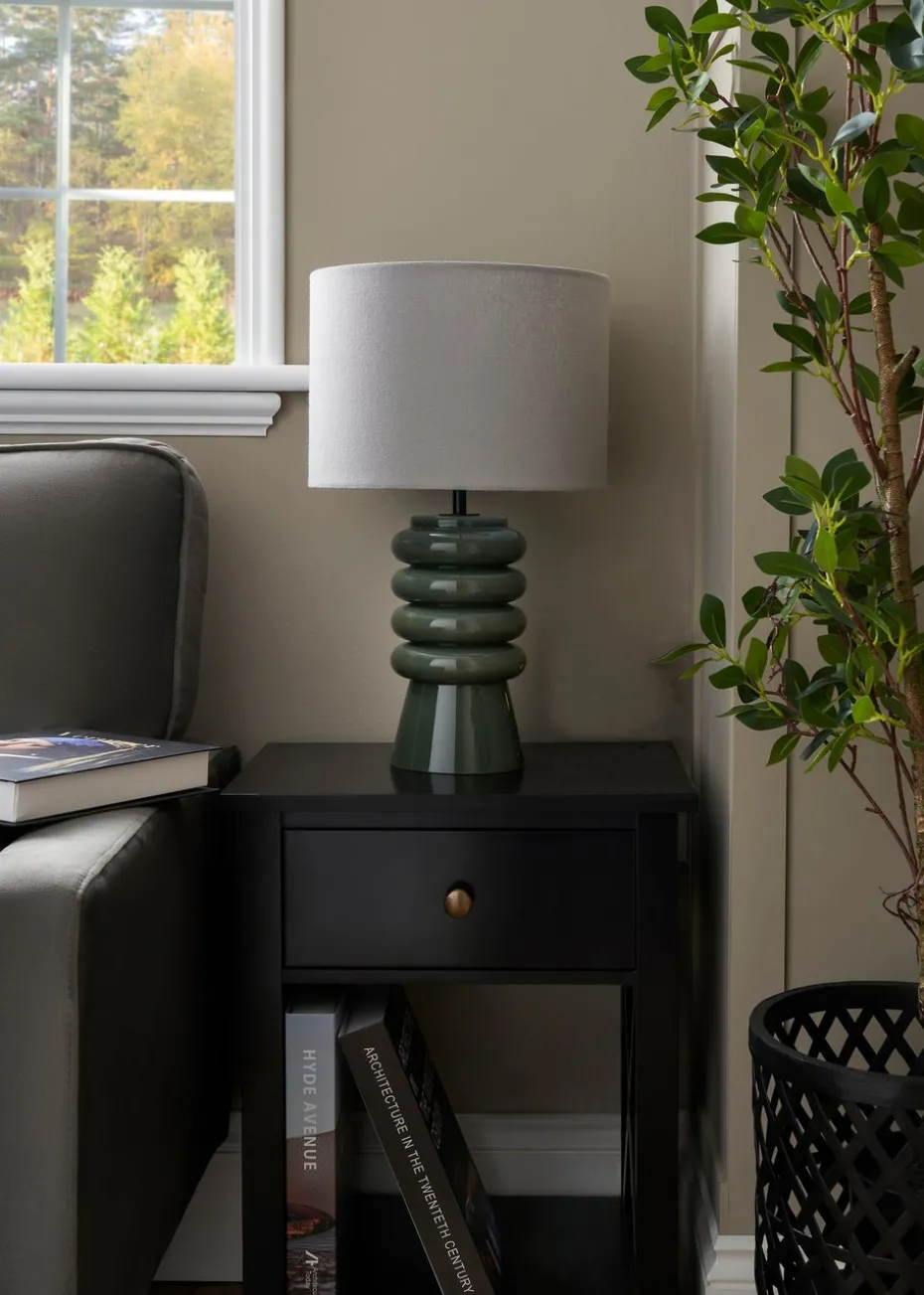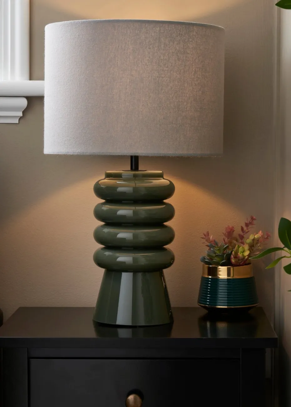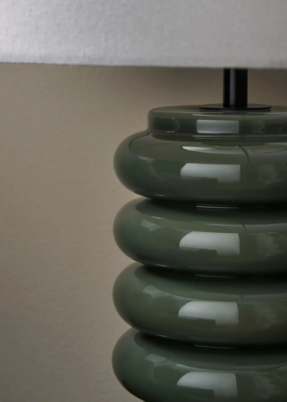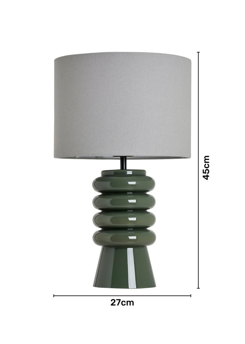BHS Fava Ribbed Glass Table Lamp Green (45cm x 27cm)
