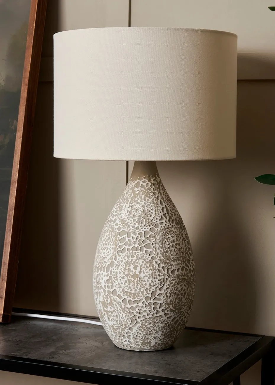 BHS Inar Textured Ceramic Table Lamp Natural (52cm x 30cm)