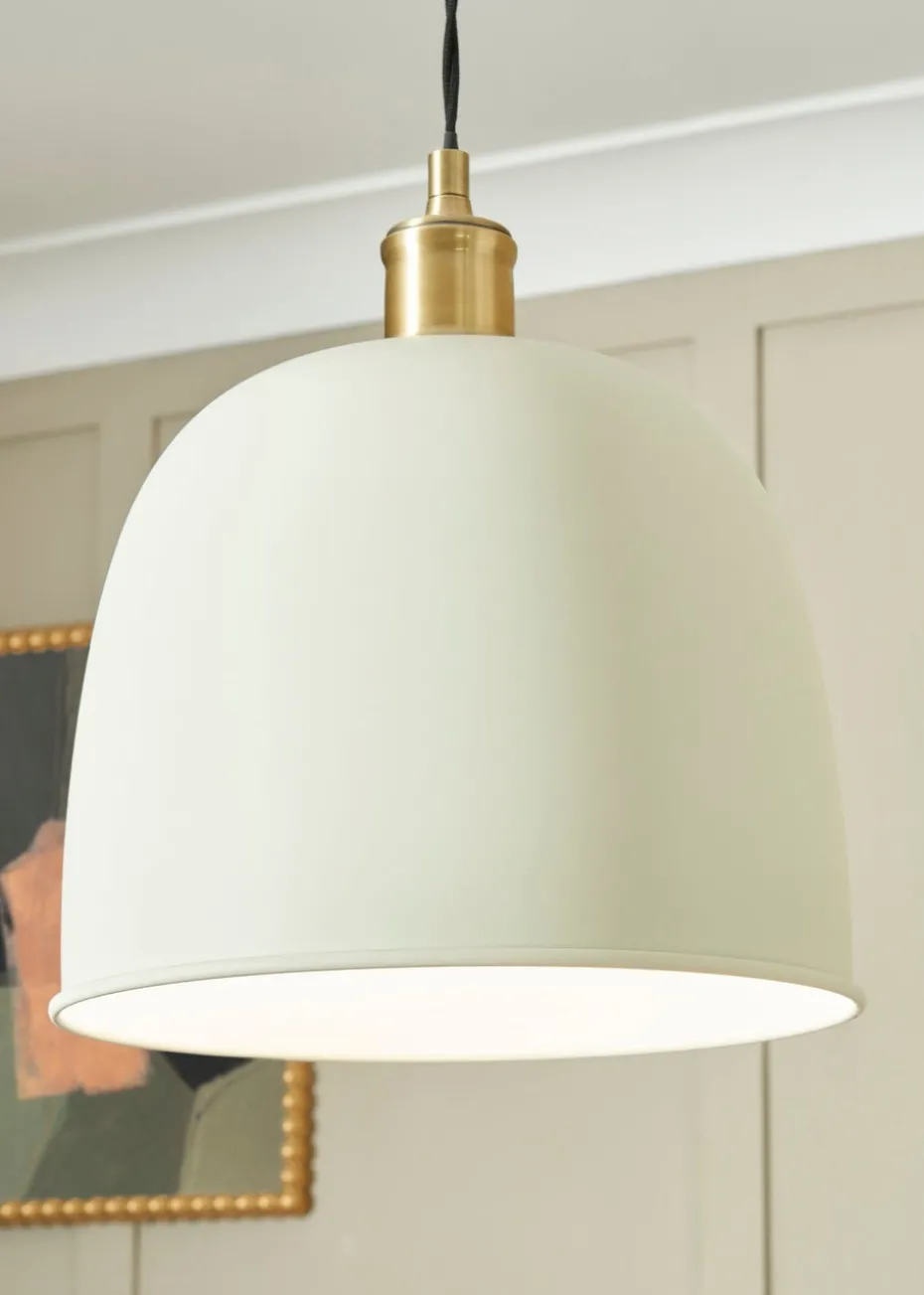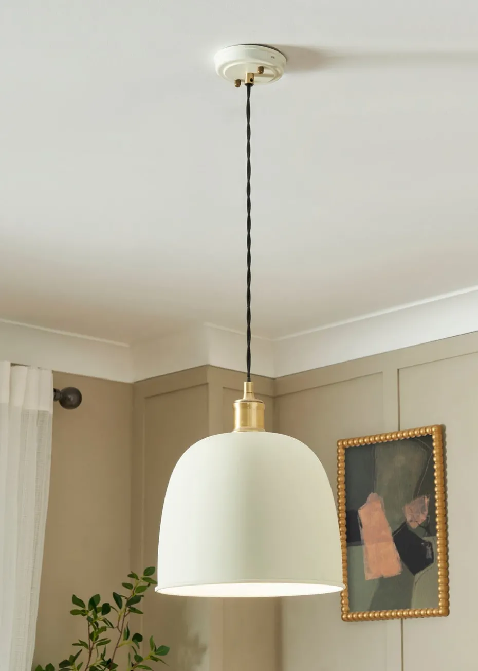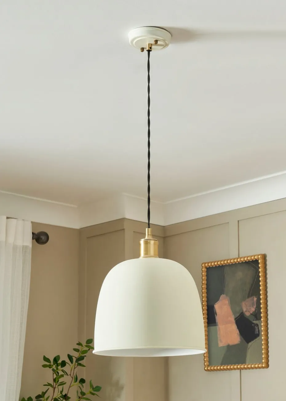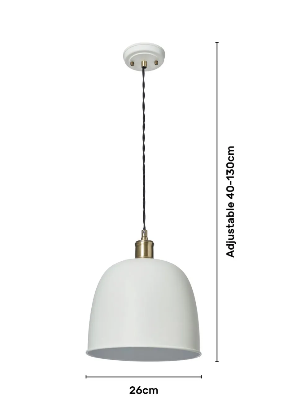 Illuminate your home with the BHS DAMANI Ivory & Brass Dome Ceiling 1-Light, a stunning fixture that blends modern design with timeless elegance. Featuring a sleek ivory dome shade and polished brass detailing, this ceiling light creates a warm, inviting ambiance while adding a sophisticated touch to any room. Requires 1 x E27 ES bulb, not included. ADJUSTABLE Height 40-130cm x 26cm.