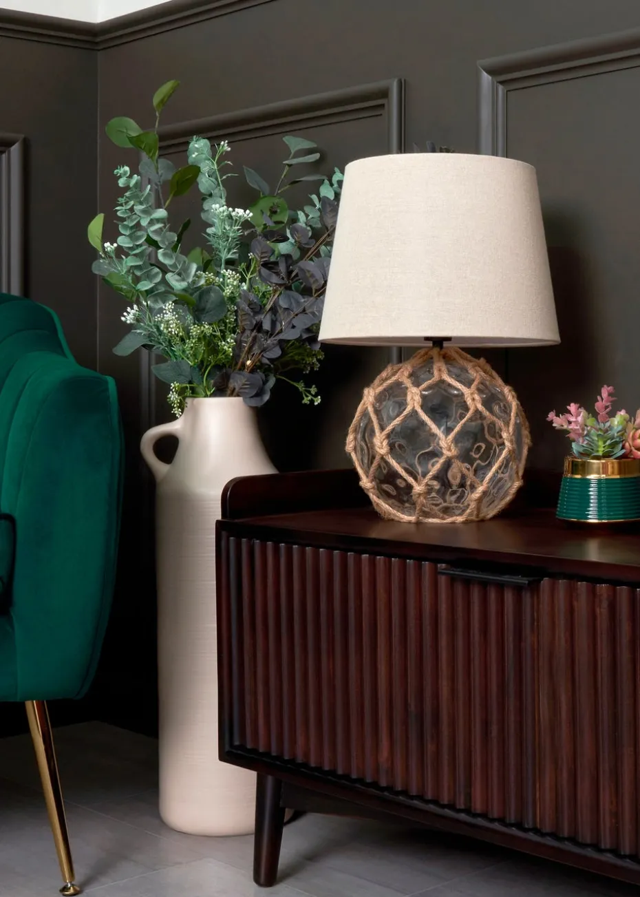 Be the first to review “BHS Lighting Seaqua Clear Dimpled Glass Rope Table Lamp (41cm x 28cm)” Cancel reply