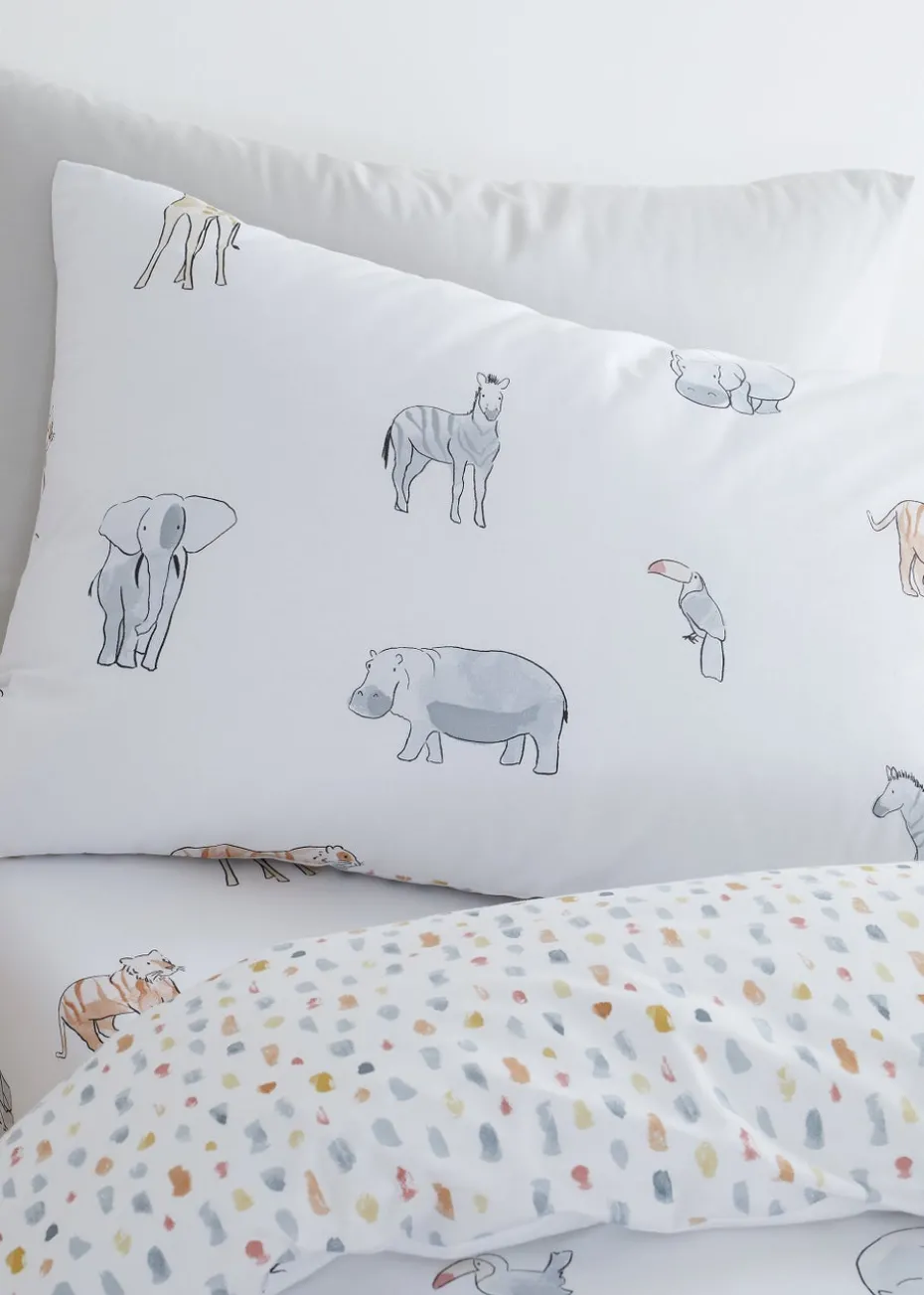 Say hello to the animals at the zoo with your favourite hand-drawn safari friends, paired with a colourful brush stroke reverse. Dream in blissful comfort under wonderfully soft cotton, a naturally breathable fibre that encourages a better nights sleep. Bianca evokes a sense of well being and relaxation perfect for creating a calming retreat with timeless styling for the modern home. Ethically sourced overseas and made to quality and human-ecological safety standards, in accordance with STANDARD 100 by OEKO-TEX®.