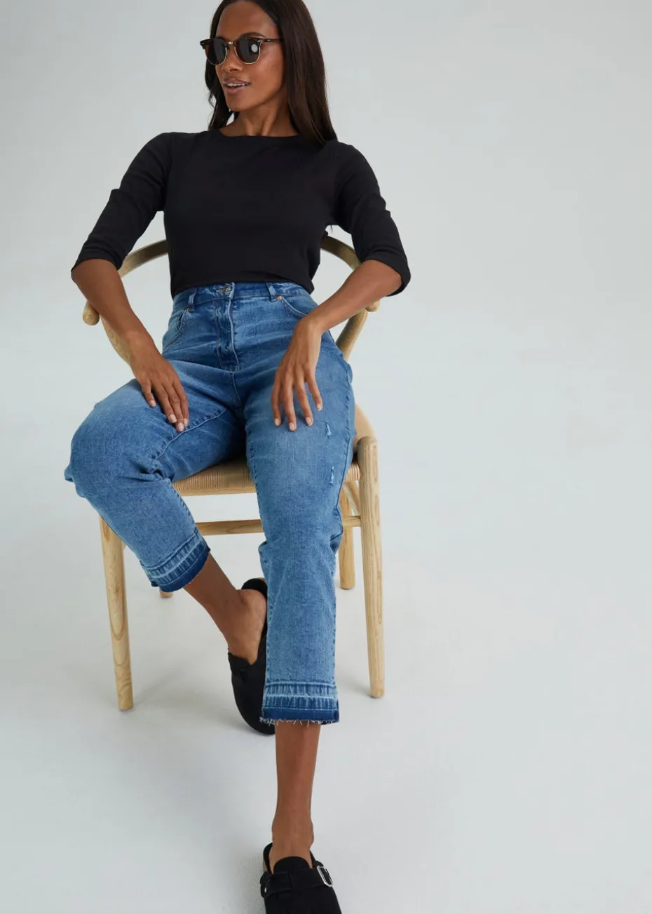 Like your versatile basics? We’ve crafted what we believe to be the perfect T-shirt. In black, making it perfect for work to weekend, the 3/4 sleeves provide that extra bit of comfort, while the flattering round neckline keeps things nice and simple. Team the look with jeans and trainers in the colder months, or with shorts and sandals when the weather turns nice. Model Height: 5ft 10.