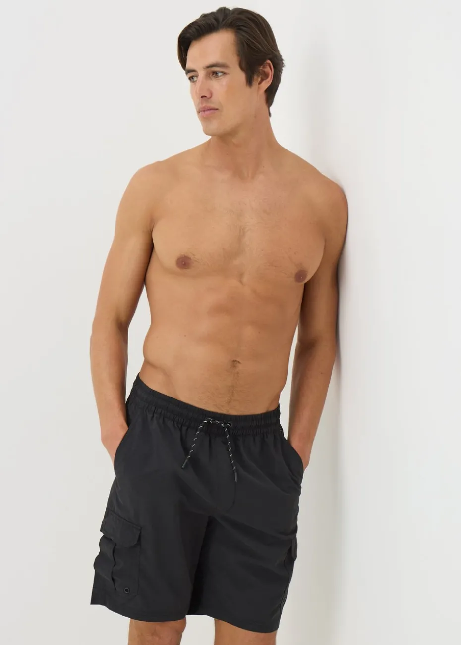 Elevate your swimwear game with these Black Cargo Swim Shorts designed specifically for active men. Perfect for poolside relaxation, beach days, or water sports, these shorts combine the practicality of cargo detailing with quick-drying, lightweight comfort.