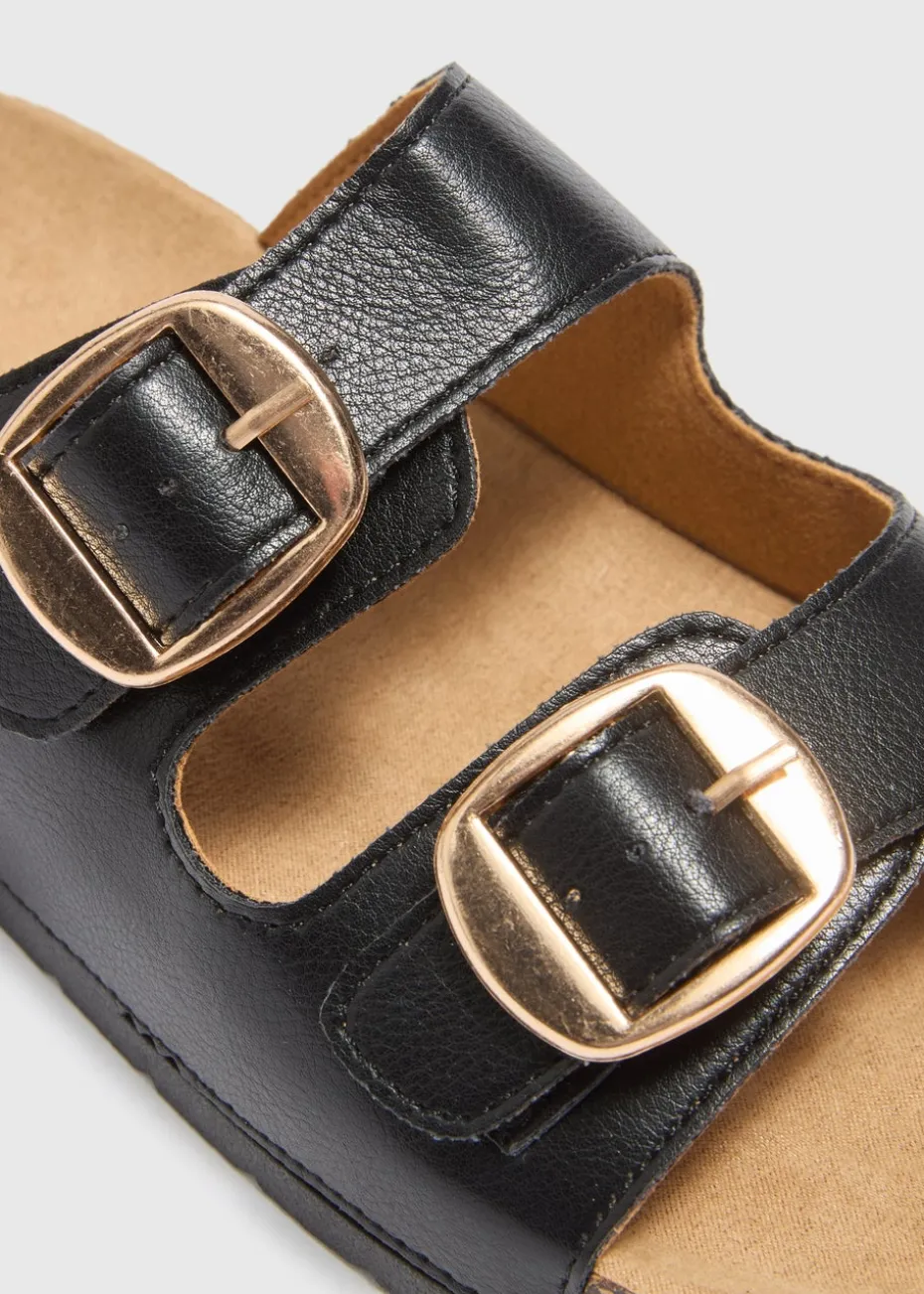 Step into comfort and style with the Black Double Buckle Footbed Sandals. Featuring two adjustable buckles, these sandals provide a customizable fit for ultimate comfort, while the contoured footbed offers support with every step. The neutral stone colour complements any casual outfit, making them a versatile choice for warm-weather days.