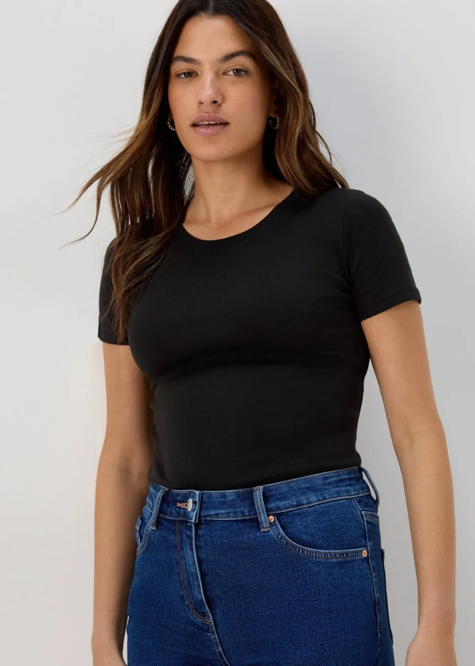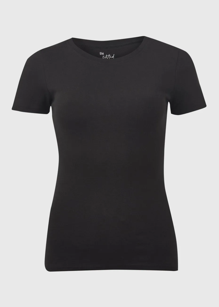 There’s no such thing as having too many T-shirts, so why not try ours? Constructed from a super soft material, our black essential tee is cut with short sleeves and a round neck. Pair with all your favourite leggings and jeans for simple style that wins every time. Model Height: 5ft 9 1/2.