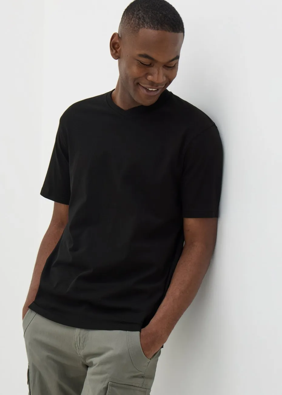 Stock up on an everyday essential with our Black Essential Crew Neck T-Shirt. Styled with short sleeves and a simple crew neckline, it comes in a relaxed regular fit and is made from 100% cotton for soft comfort. Pair it with chinos and loafers for a smart casual ensemble or layer it under a blazer and add dark wash jeans for a polished office look.