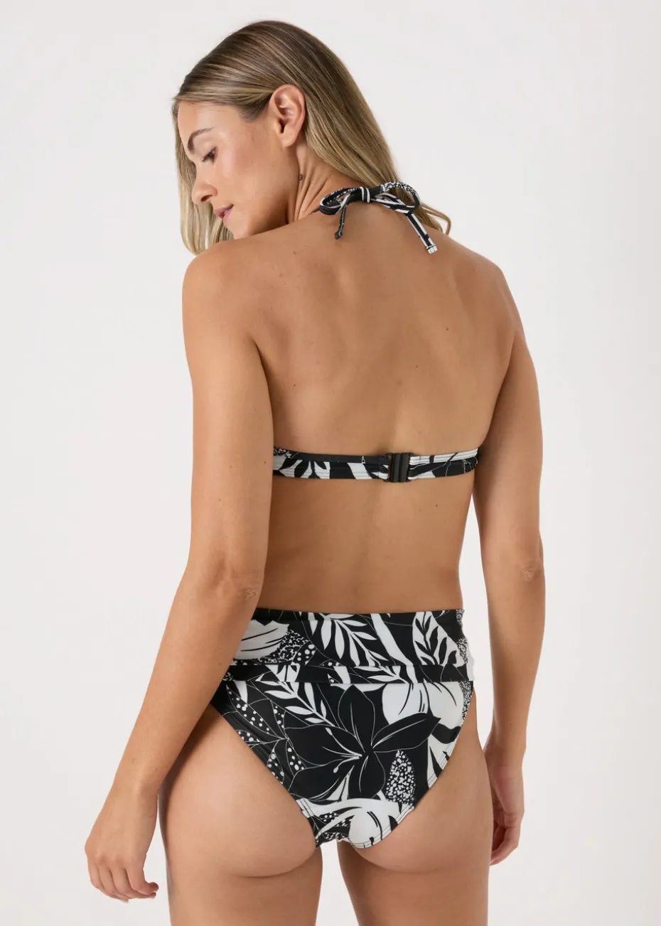 Update your holiday collection with our comfortable and stylish black floral high waist bikini bottoms. Crafted from high-quality materials, these briefs provide a soft and gentle feel against the skin for all day comfort by the pool or beach. The monochrome design, featuring a black base with contrasting cream floral details, adds a touch of fun to your swimwear, pairing with the matching bikini top for a put together look. The high waist further adds some comfort to these bikini bottoms, creating a confident all day wear.