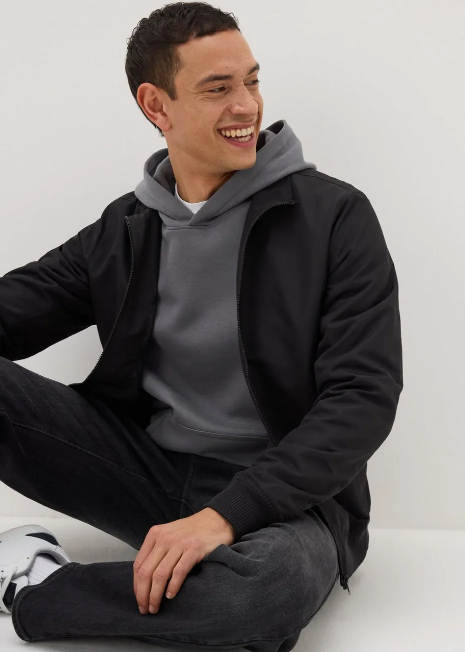 Elevate your outerwear with the Men’s Black Funnel Harrington Jacket, a perfect mix of classic style and modern edge. Featuring a high funnel neckline and a sleek zip-up design, this jacket is ideal for smart-casual looks, everyday layering, or evening wear. Crafted from lightweight yet durable fabric, it ensures both style and comfort. Layer over a t-shirt and jeans for a relaxed, everyday look.