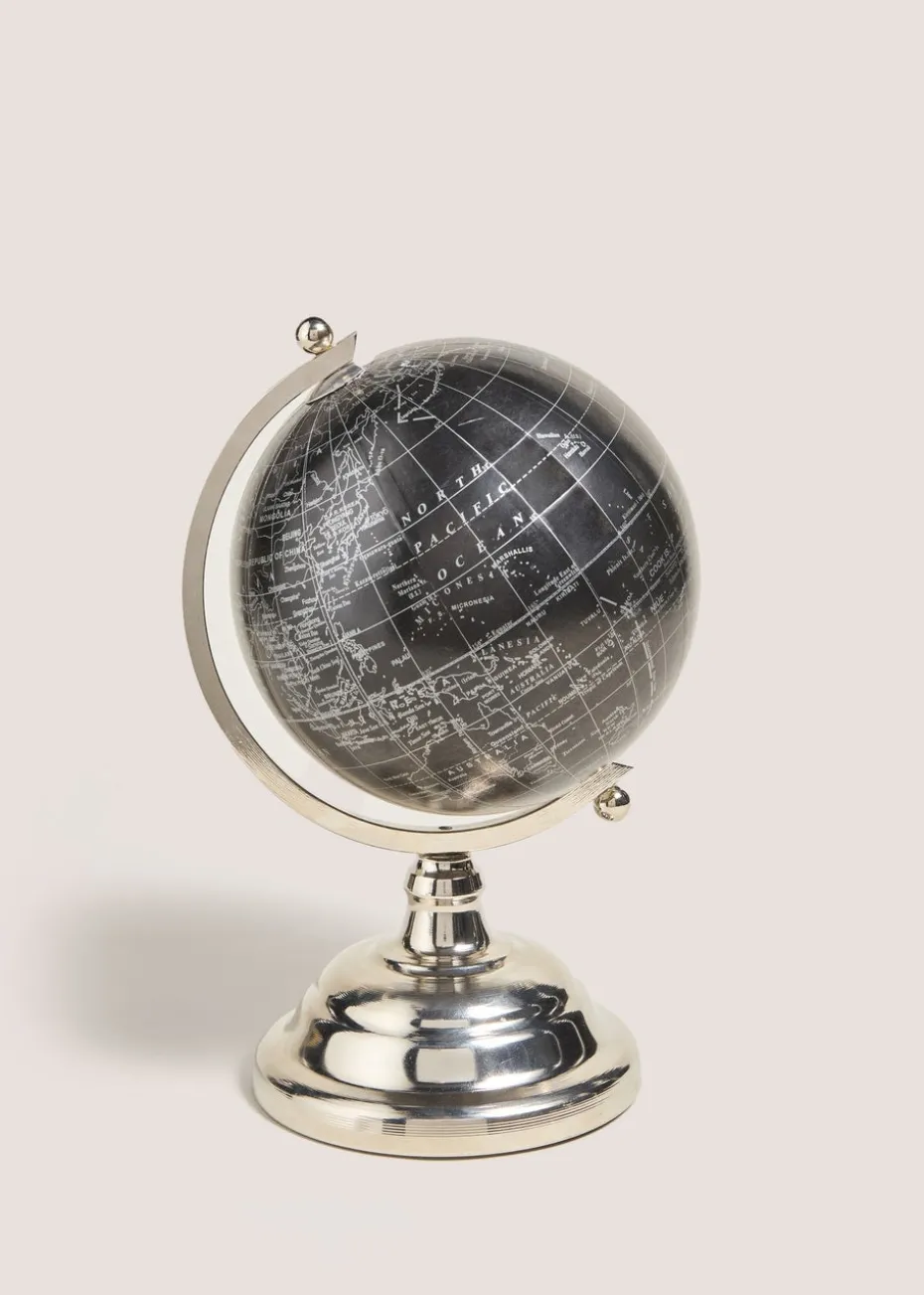 Adorn your décor with our enchanting Black Globe Ornament, an elegant décor piece that will transport you to a world of wonder and exploration. Crafted with meticulous attention to detail, this exquisite ornament captures a classic and modern décor of black and silver with a fascinating world map design. Embark on a global adventure by using the ornament as an educational tool, teaching your children about geography and fostering their curiosity or elevate your travel-themed décor by incorporating the ornament into your room’s design.