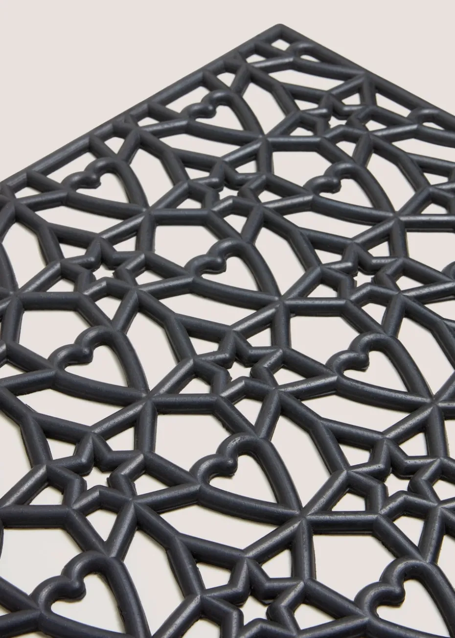 Welcome guests with a touch of whimsical charm using the Black Heart & Star Rubber Doormat. Measuring 59cm in length and 39cm in width, this durable mat is not only functional but also a stylish addition to your doorstep. Crafted from high-quality rubber, it features an intricate cut-out pattern of hearts and stars that interlock in a lattice design, offering an inviting path for shoes to wipe on. The black colour ensures versatility and makes it suitable for various home styles, while the robust material provides excellent resistance against the elements and heavy foot traffic. Perfect for both indoor and outdoor use, this doormat combines practicality with a playful aesthetic.