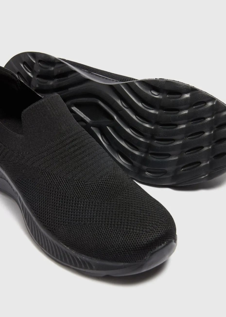 Our Knit Slip On Trainers in classic black are the effortlessly stylish essential your wardrobe craves. Perfect for busy days on your feet, these trainers combine comfort and chicness seamlessly. The knitted upper feels snug and soft against your feet, while the slip-on design makes them a breeze to wear. The black sole adds a modern touch and provides excellent traction. Pair with your go-to jeans and a tee for a casual day look or opt for a relaxed vibe with joggers and a sweatshirt.