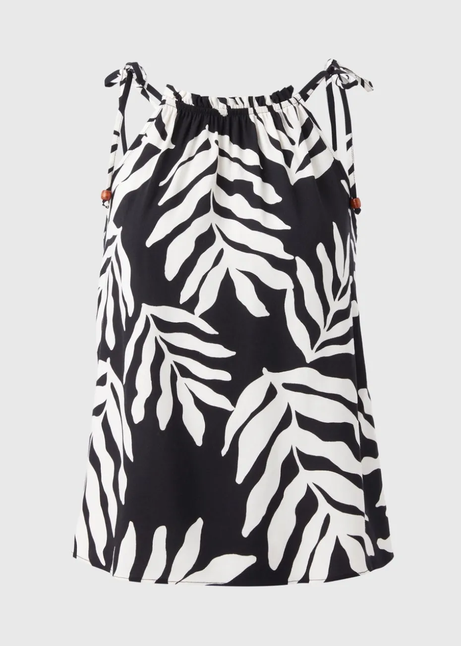 This Black Leaf Print Cami Top is an elegant yet versatile piece that’s sure to elevate your wardrobe. Crafted from a premium viscose fabric, this cami features a stunning leaf print in a rich black and white hue. The adjustable spaghetti straps and shirred bodice provide a comfortable and flattering fit.