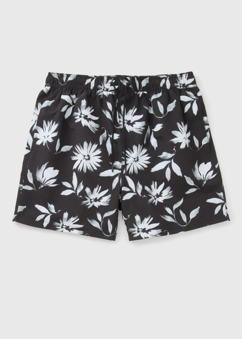 Make a statement by the pool or at the beach with the Black Mono Floral Swim Shorts. Designed with a sleek black base and a stylish monochrome floral print, these swim shorts offer a modern, effortlessly cool look. Pair with a plain white tee and sandals for a laid-back beach look.