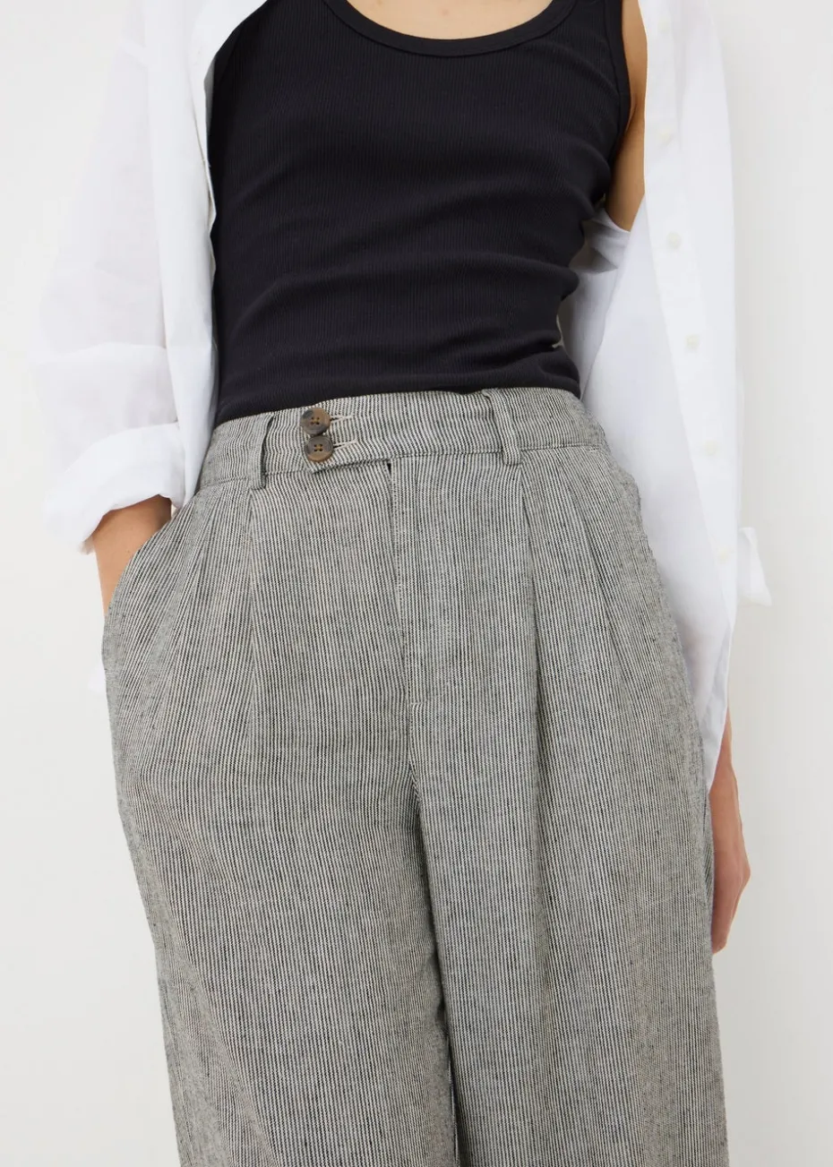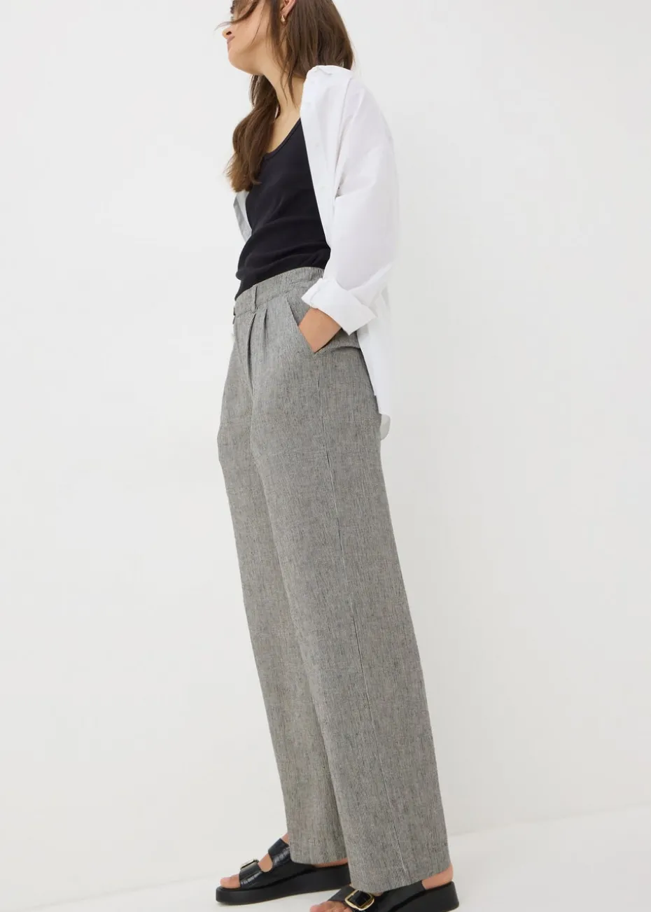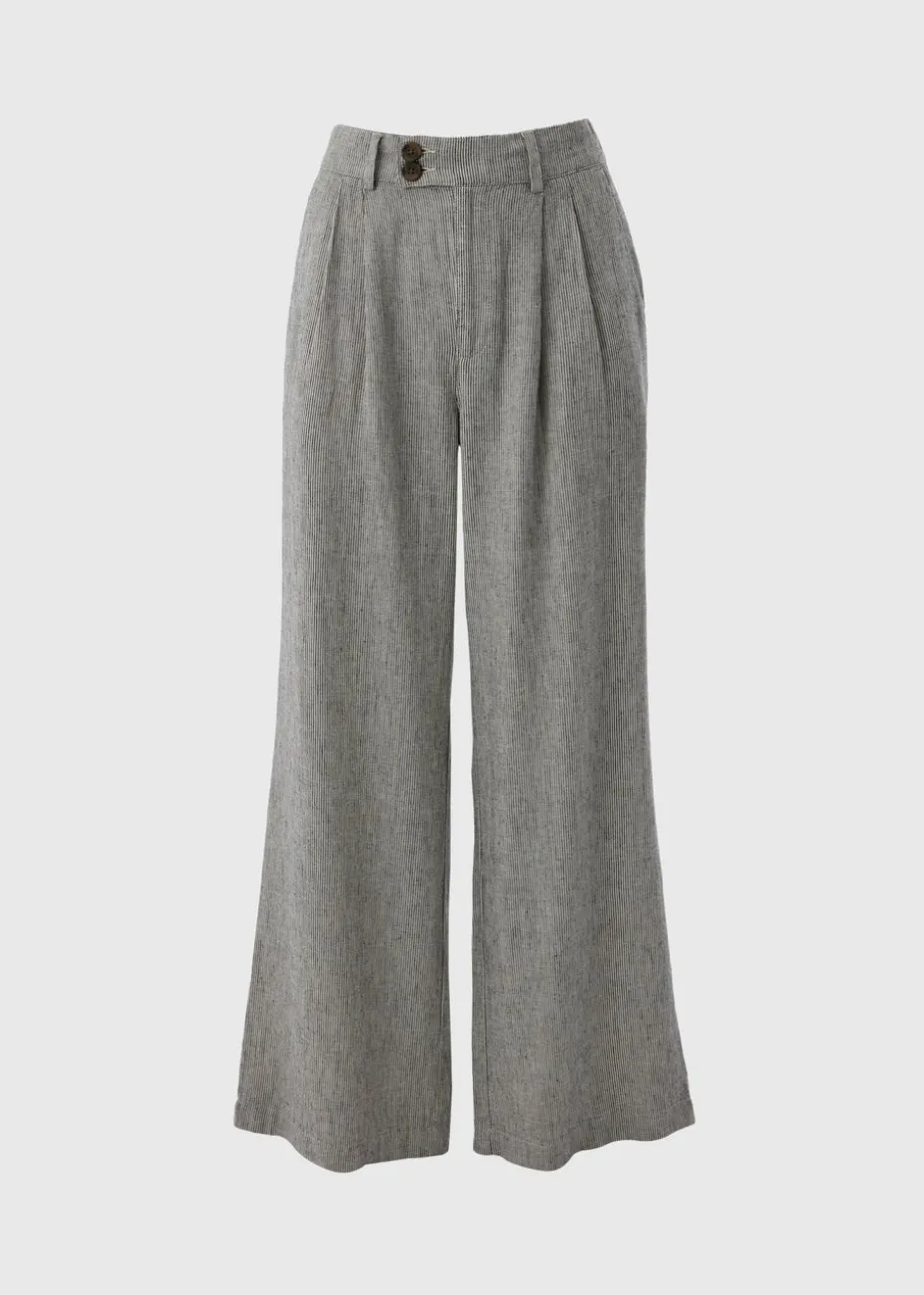 These wide-leg pants are crafted from airy black linen, making them an ideal choice for your summer wardrobe. The linen fabric is both soft and durable, perfect for any occasion.