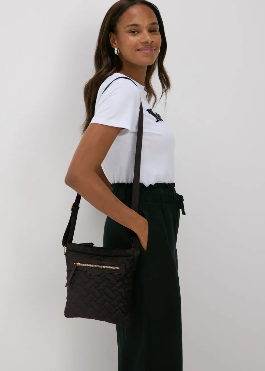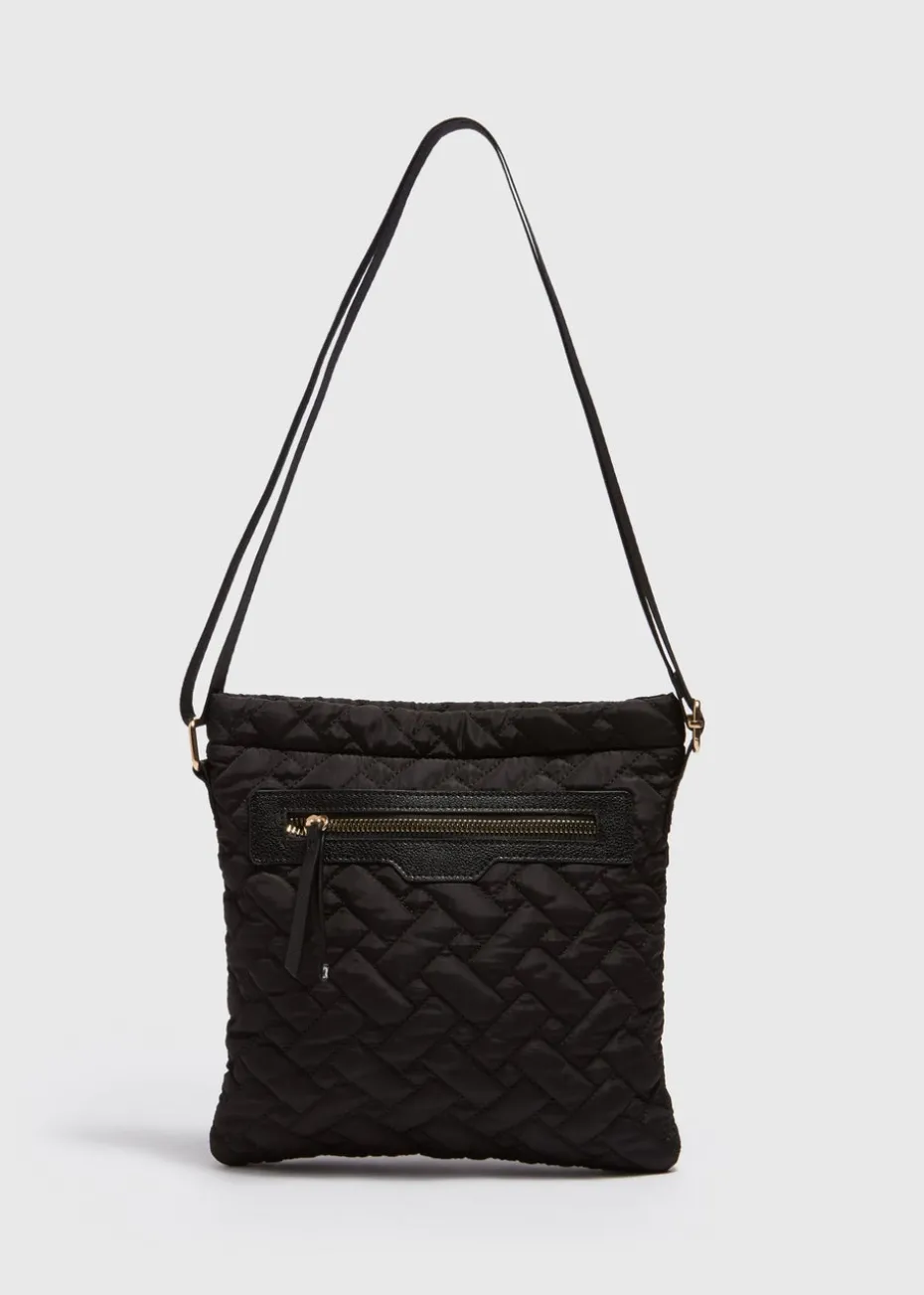 Black Nylon Textured Crossbody Messenger Bag