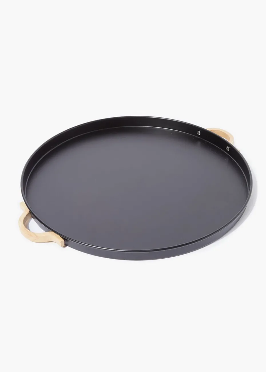 From breakfast in bed to cocktail evenings, make sure you’re serving in style. This sleek metal tray is cut to a handy round shape with contrast wooden handles so it’s convenient to carry. Finished in a glossy black metal for a cool and contemporary look, it can just as easily be displayed in the kitchen with a range of trinkets on top as it can be stored away.