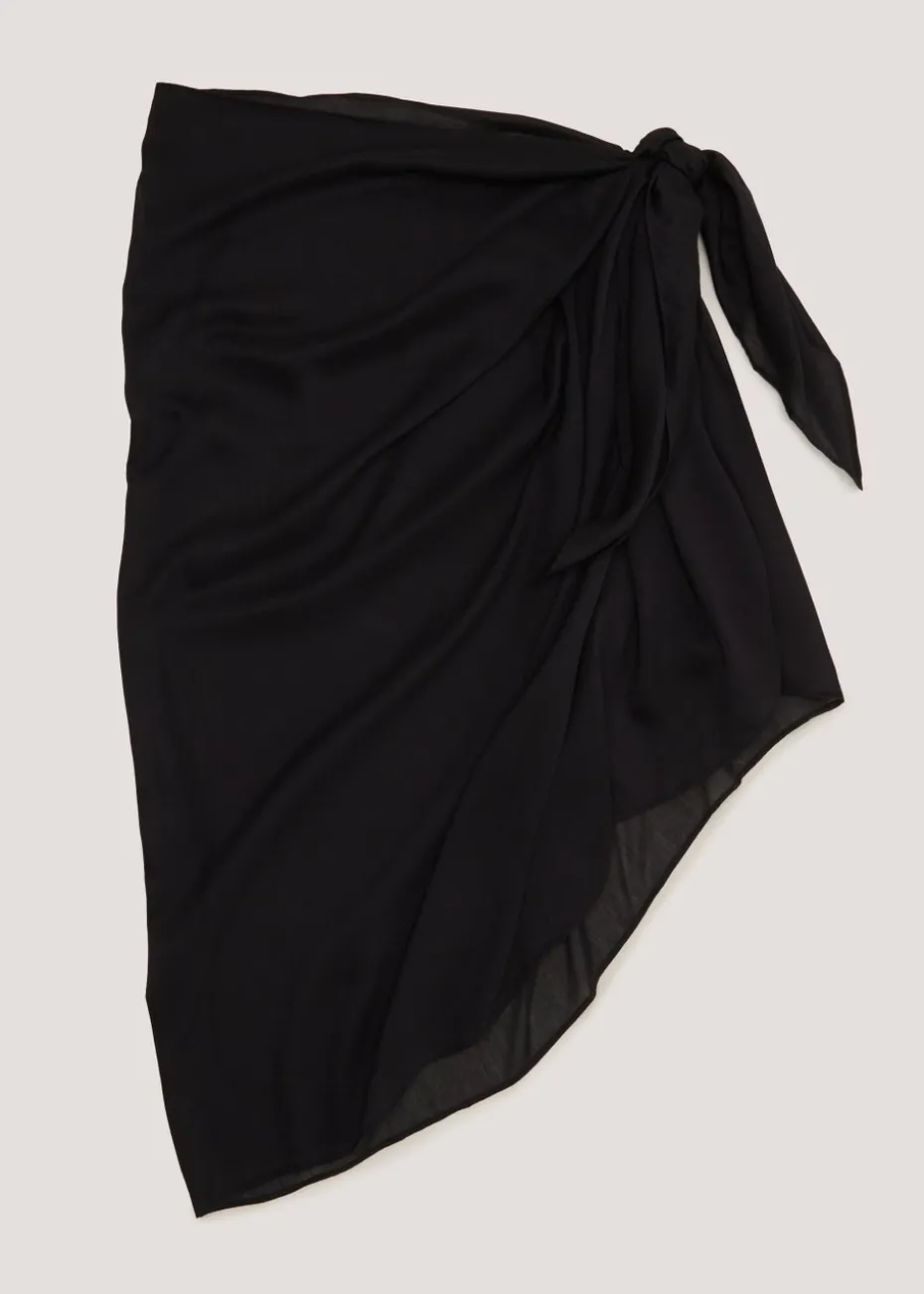 Perfect for a stroll along the beach, this sarong is perfect for those gorgeous hot summer days. In black, this chiffon number comes with the signature tie fastening. Great for layering over your favourite swimsuit or bikini. Model Height: 5ft 9 1/2.