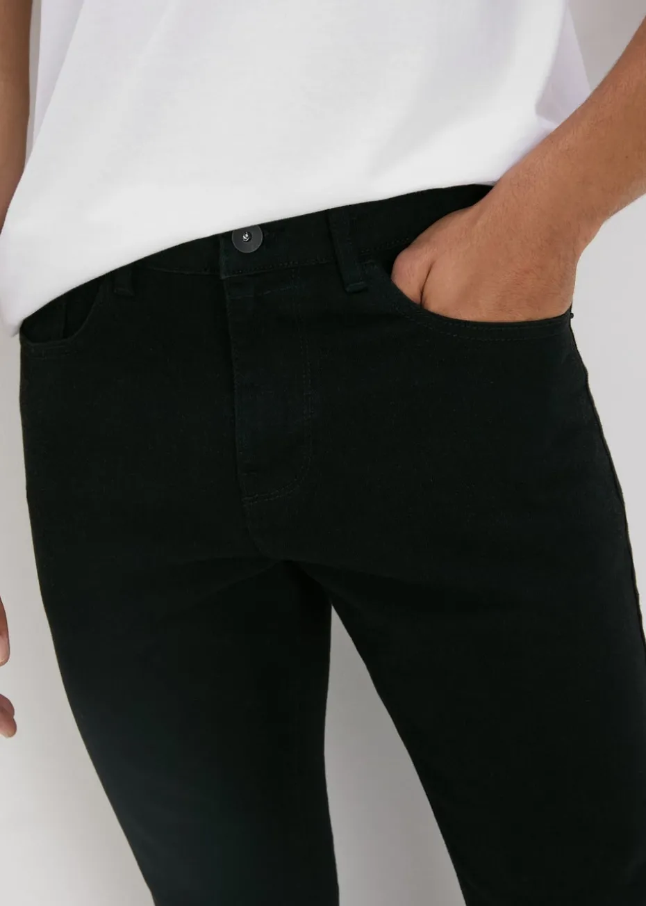Introducing our super black jeans, the must-have addition to your wardrobe. Crafted from a soft cotton rich blend, these jeans boast a skinny fit that contours your legs, accentuating your silhouette. These jeans work with any outfit for every occasion with their fit making for a flattering style. Pair with a crisp white shirt and blazer for a sharp office look or casual it up with a graphic tee and sneakers for a street-style edge.