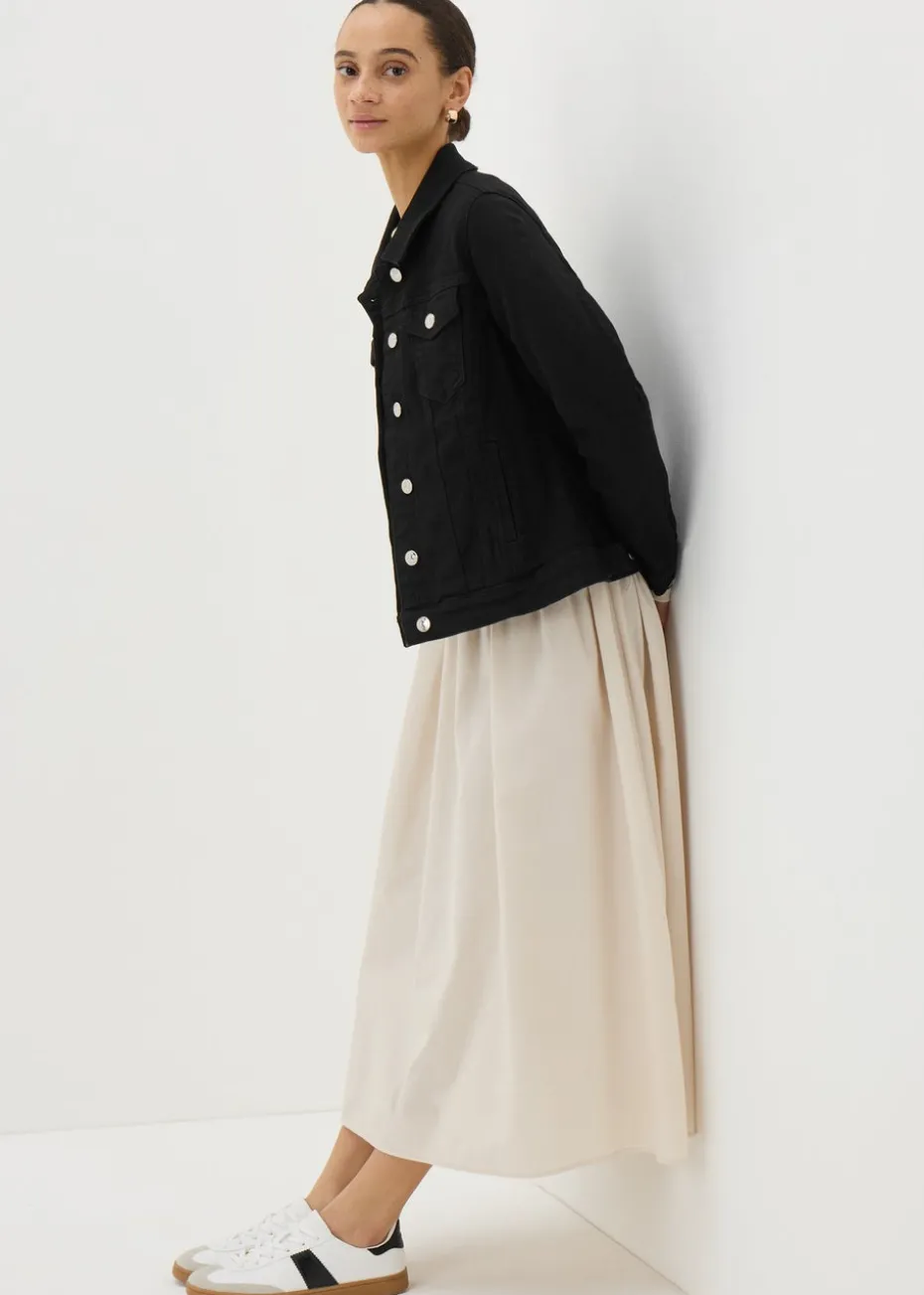 Crafted from high-quality cotton-blend fabric, our denim jacket promises both comfort and durability. The classic black colour and classic design elements, including buttoned cuffs and chest pockets, make this jacket a versatile addition to your wardrobe.